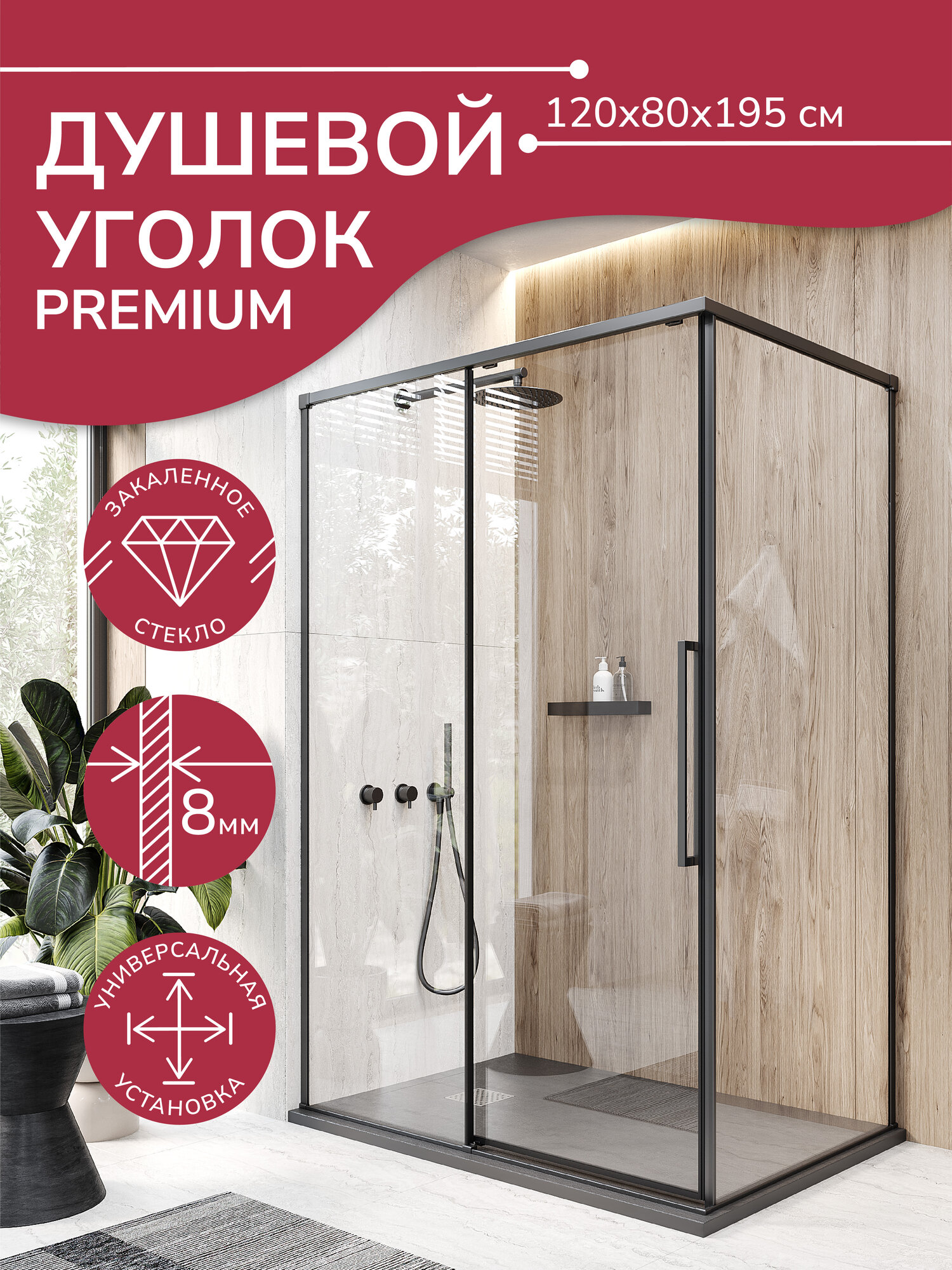 Душевой уголок 120х80 см. Ulitka Pandora стекло прозрачное 6мм, профиль черный