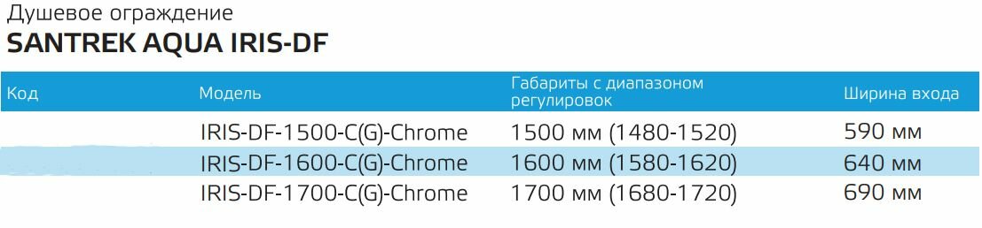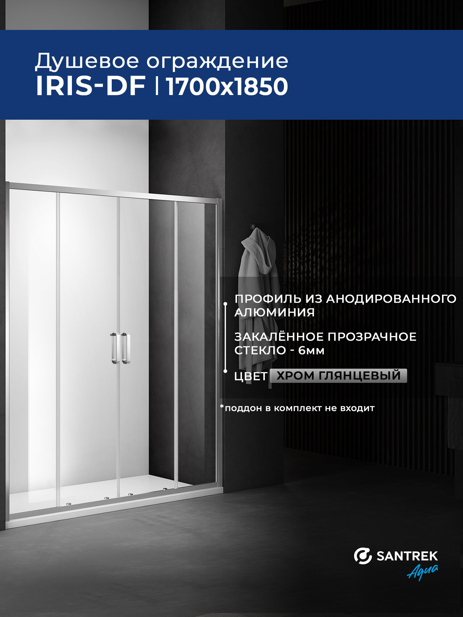 СохранитьДушевое ограждение дверь в нишу SANTREK Iris- DF-1700-C 170*185 Прямое стекло Прозр 6мм, профиль Хром интересное:
