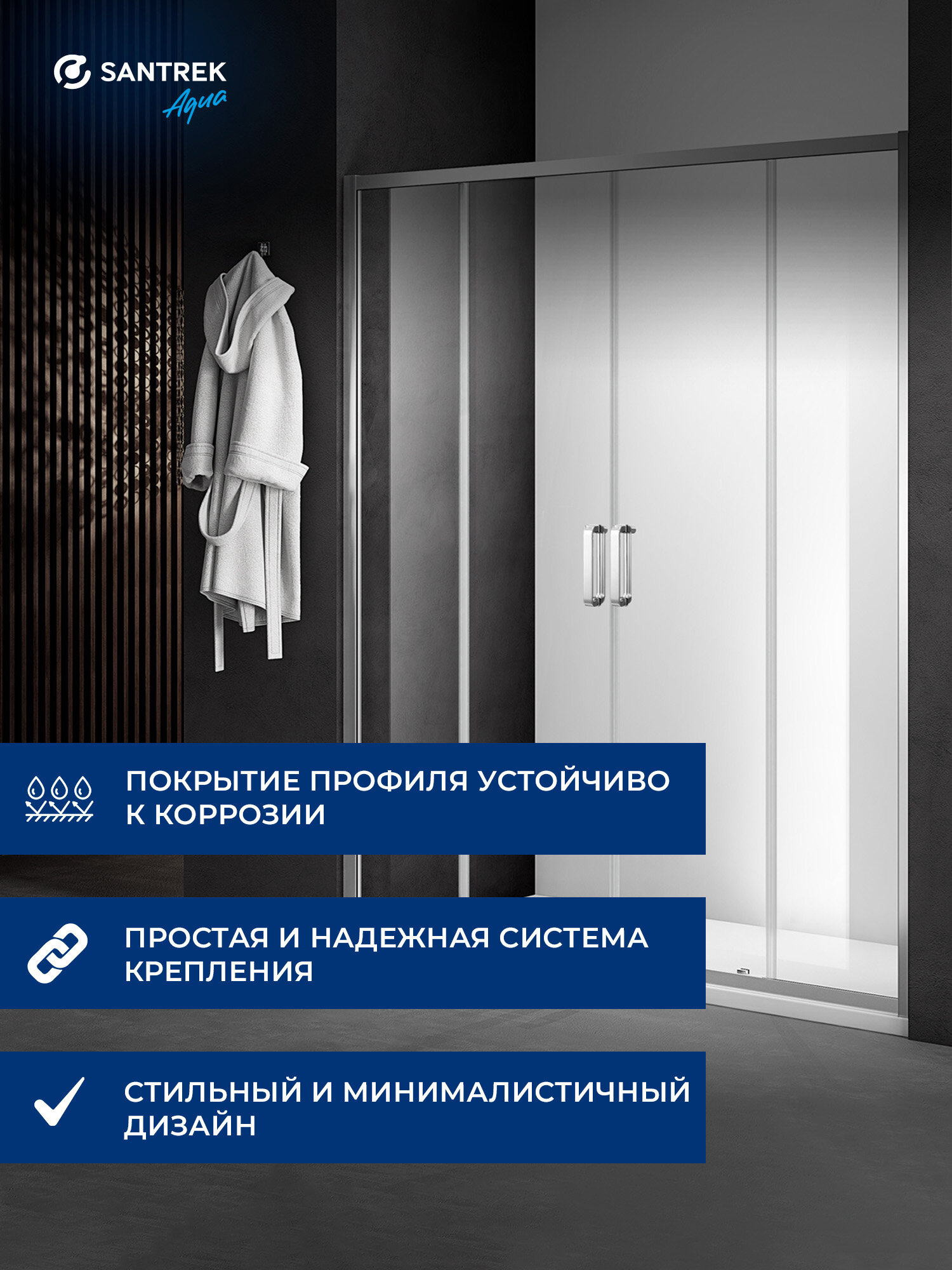Душевое ограждение дверь в нишу SANTREK Iris- DF-1500-C 150*185 Прямое стекло Прозр 6мм, профиль Хром