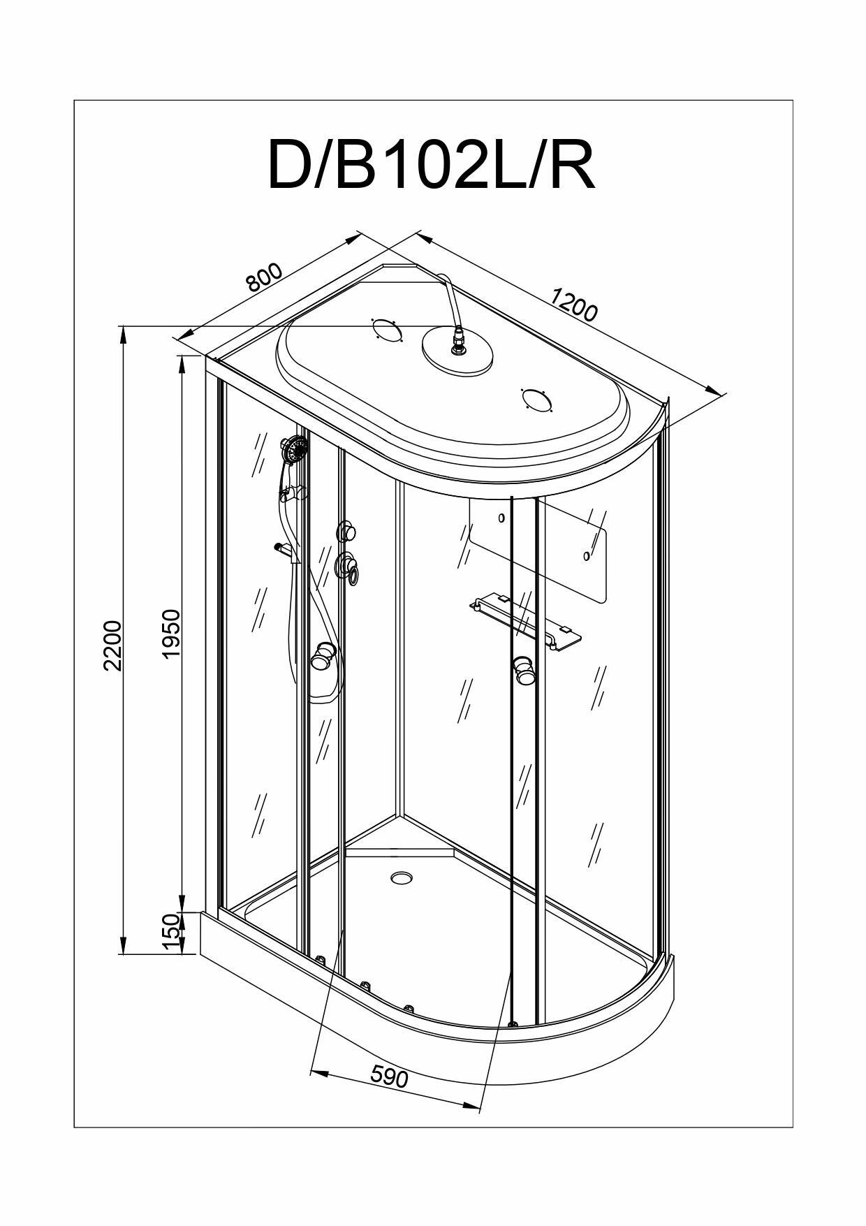 Душевая кабина Deto D102SR (120x80x220) низкий поддон, стекло матовое, правая интересное: