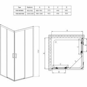 Душевой уголок Vincea Dice VSS-4D900CL 90х90 стекло прозрачное 8 мм