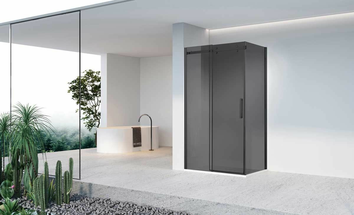 Душевой уголок Vincea Slim-N VSR-4SN9014CLGM, 1400х900 мм, вороненая сталь, стекло прозрачное