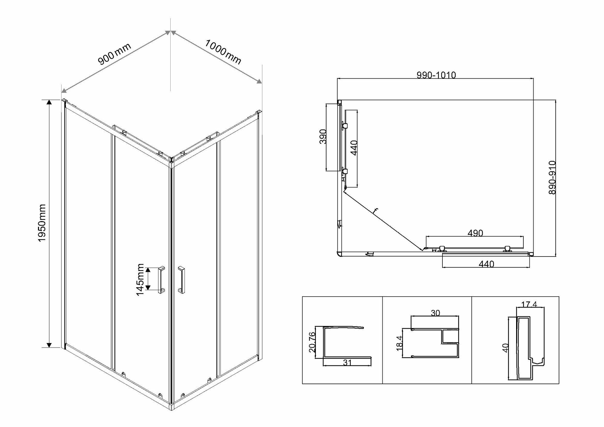 Душевой уголок Vincea Garda VSS-1G9010CL, 1000*900, хром, стекло прозрачное