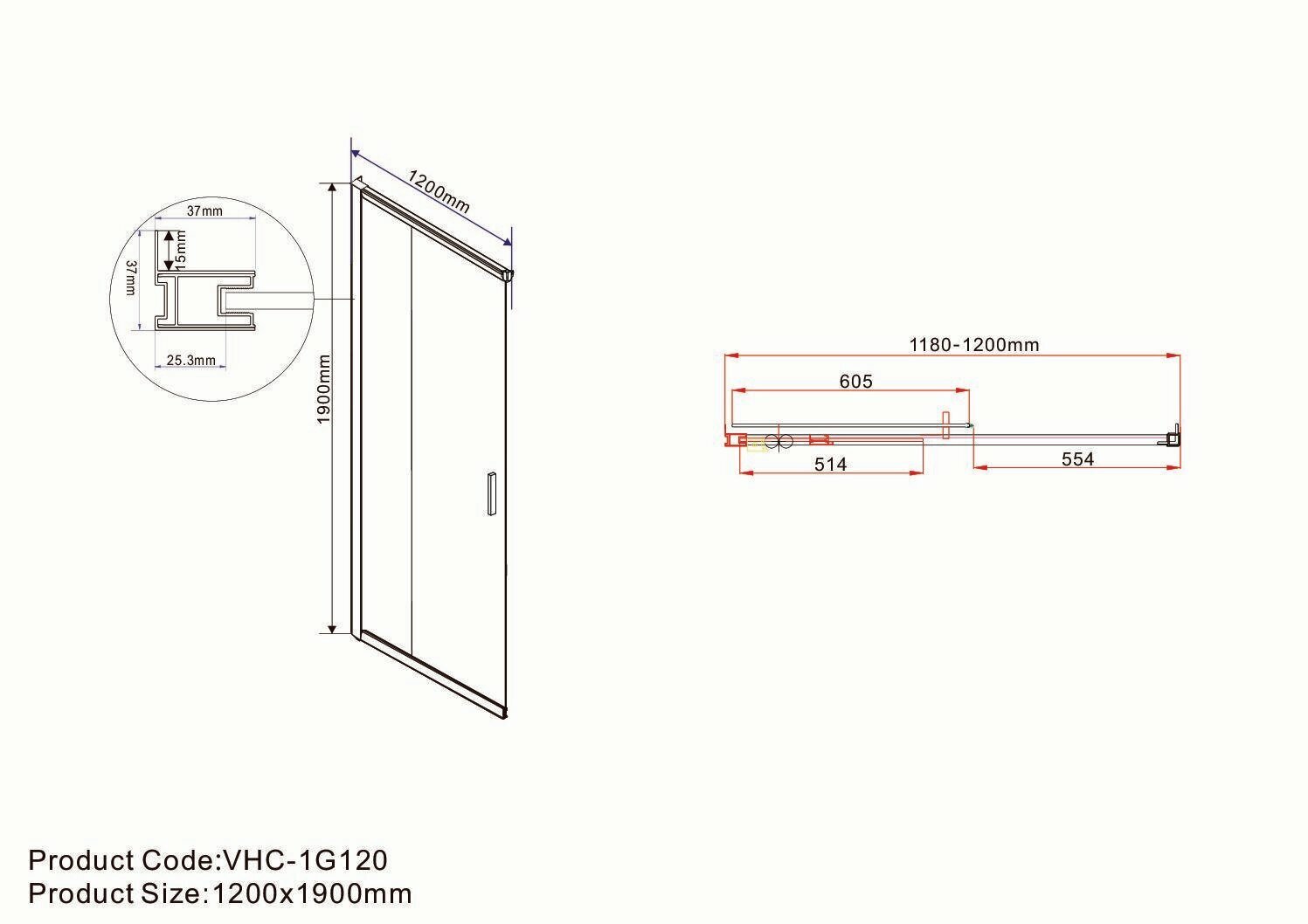 Душевой уголок Vincea city vsr-5ct9012mt, 1200 900, хром, стекло текстурное vsr-5ct9012mt