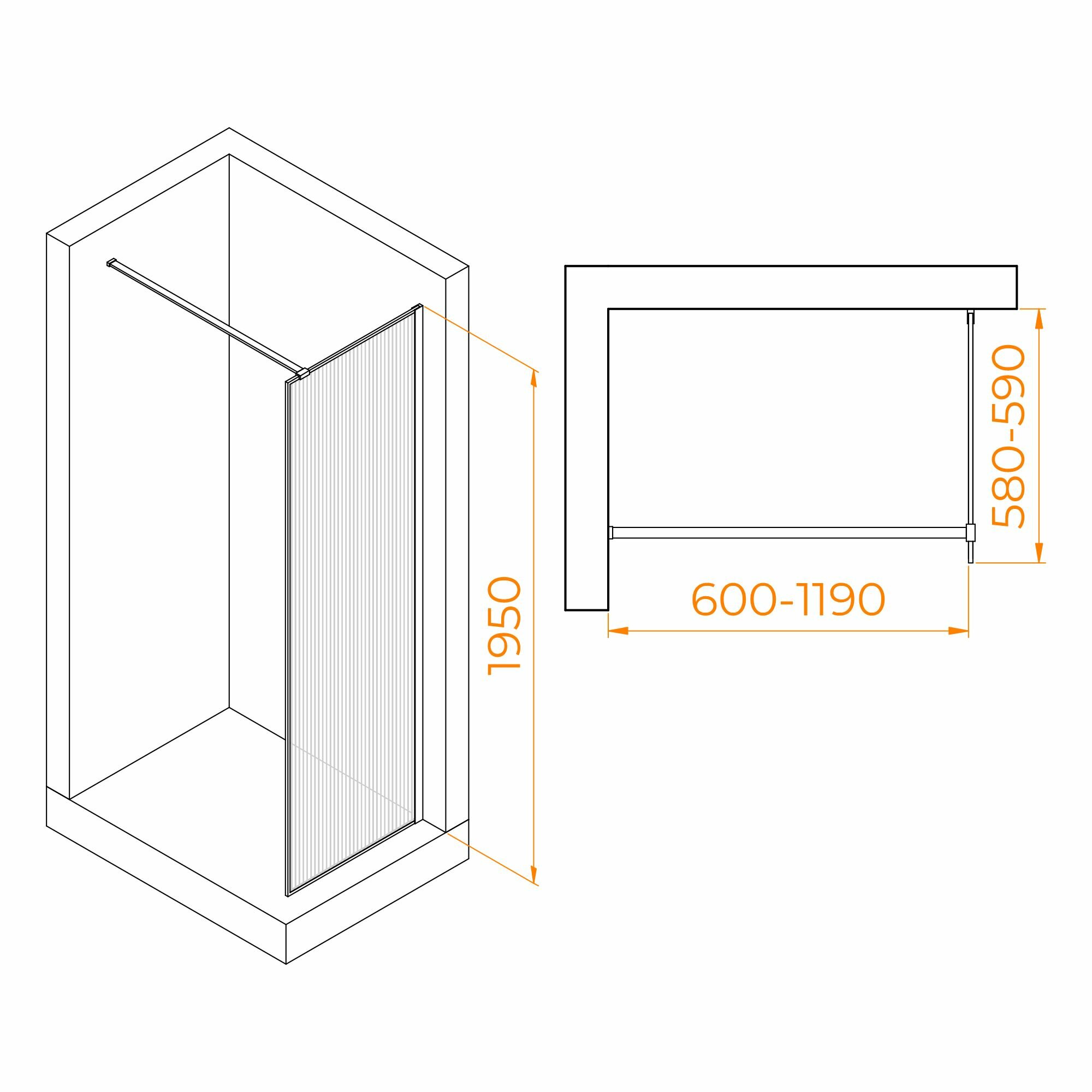 Перегородка для душа RGW WA-08 06100810-151 стекло Ribbed (Ребристое) 100х195 см.