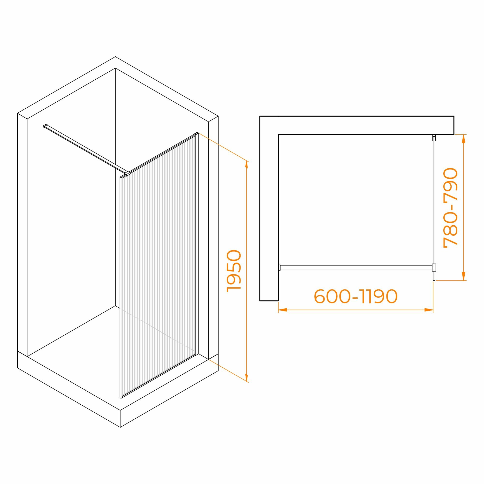 Душевая перегородка RGW WA-08 Walk In 1200х1950 хром (рифленое стекло) 06100812-151