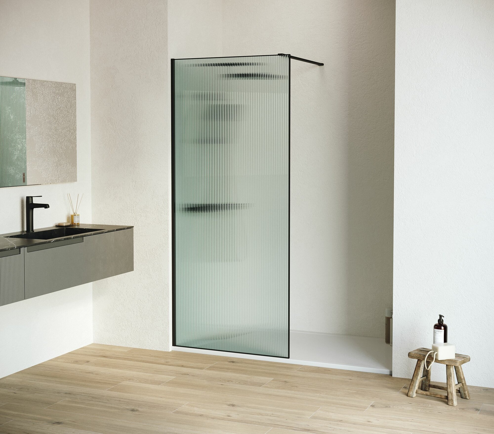 Душевая перегородка RGW Walk In 100 х 195 см WA-08-B черный цвет, Ribbed (ребристое) стекло 8 мм, EasyClean (06100810-154)