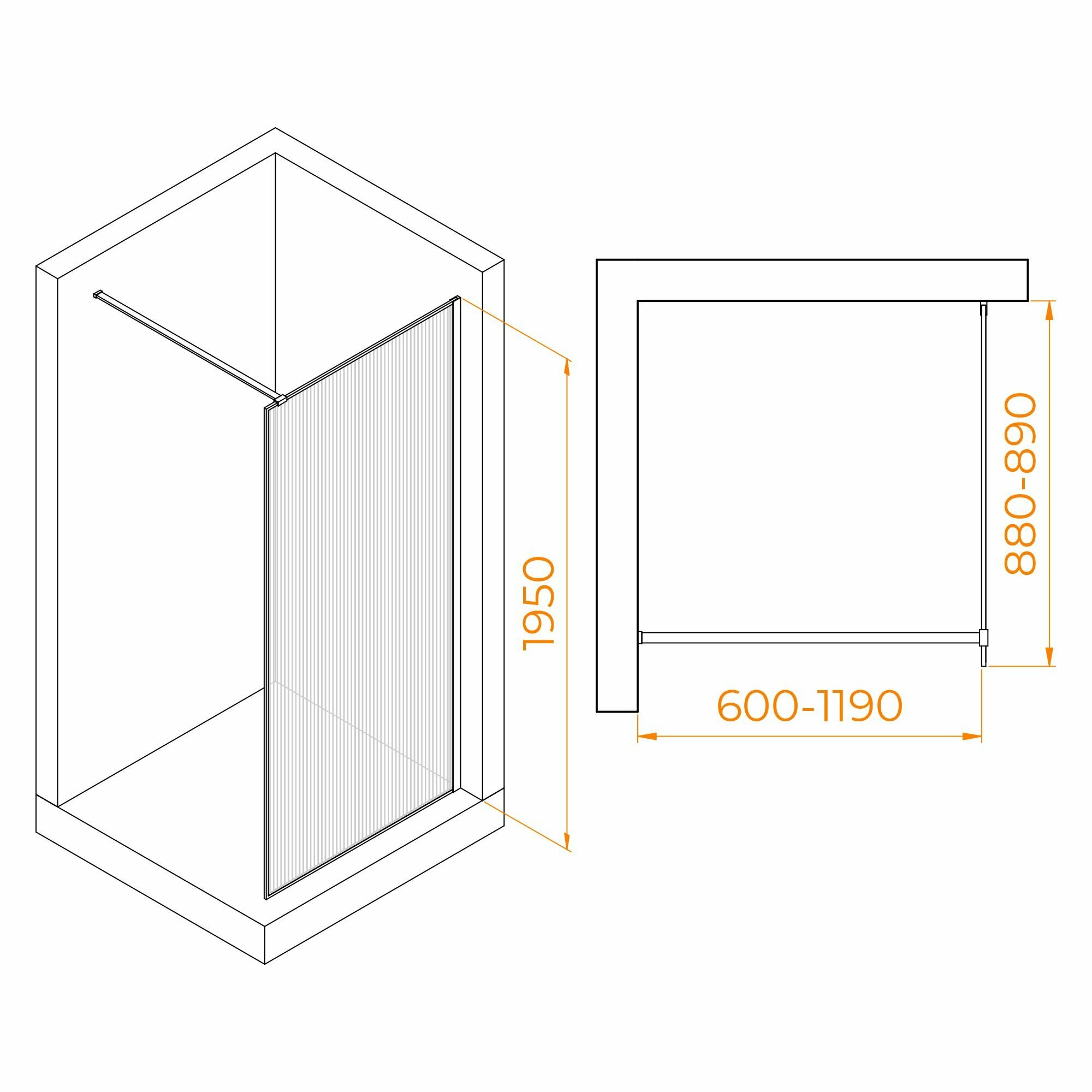 Душевая перегородка RGW WA-08 Walk In 900х1950 хром (рифленое стекло) 06100809-151