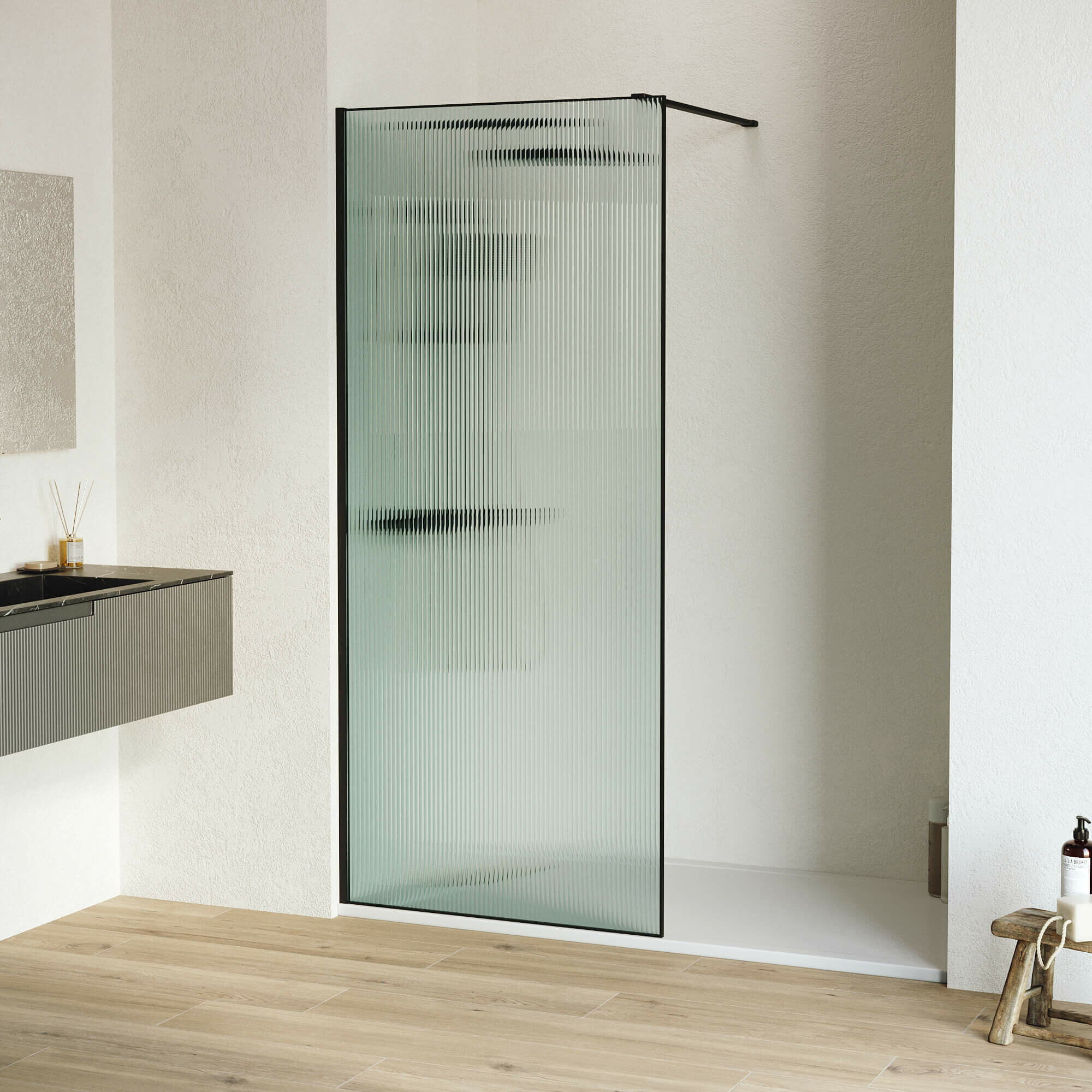 Душевая перегородка RGW Walk In 100 х 195 см WA-08-B черный цвет, Ribbed (ребристое) стекло 8 мм, EasyClean (06100810-154)