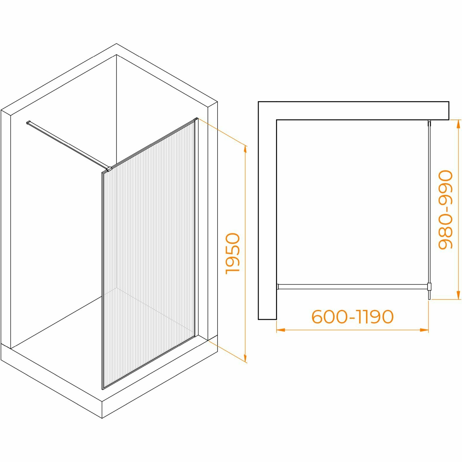Перегородка для душа RGW WA-08 06100810-151 стекло Ribbed (Ребристое) 100х195 см.