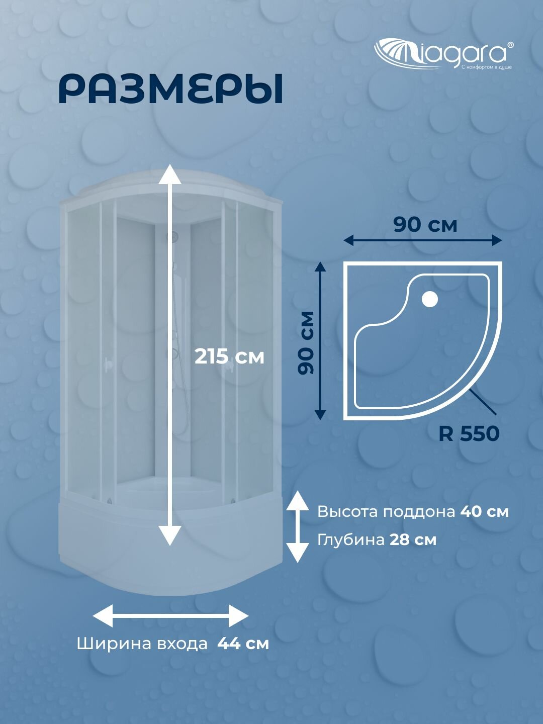 Душевая кабина Niagara Briz (90х90х215), высокий поддон, с крышей интересное: