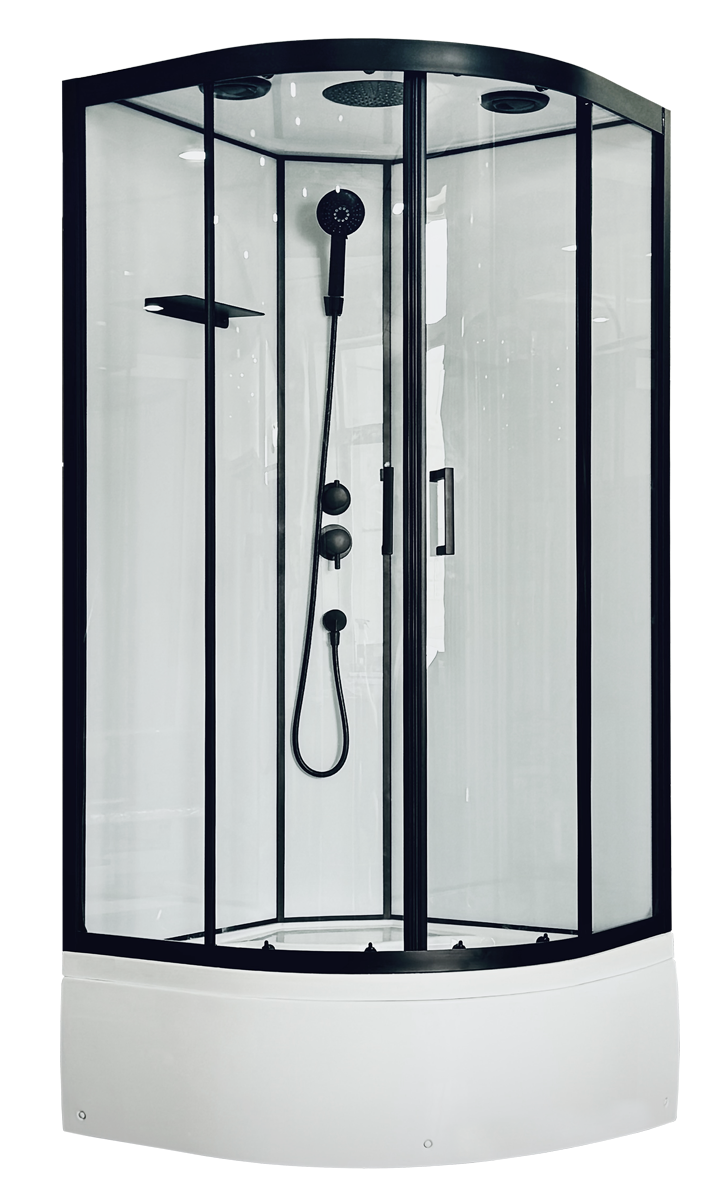 Душевая кабина Royal Bath FATO RB 90*90*215 стекло прозрачное, средний поддон, черный профиль интересное: