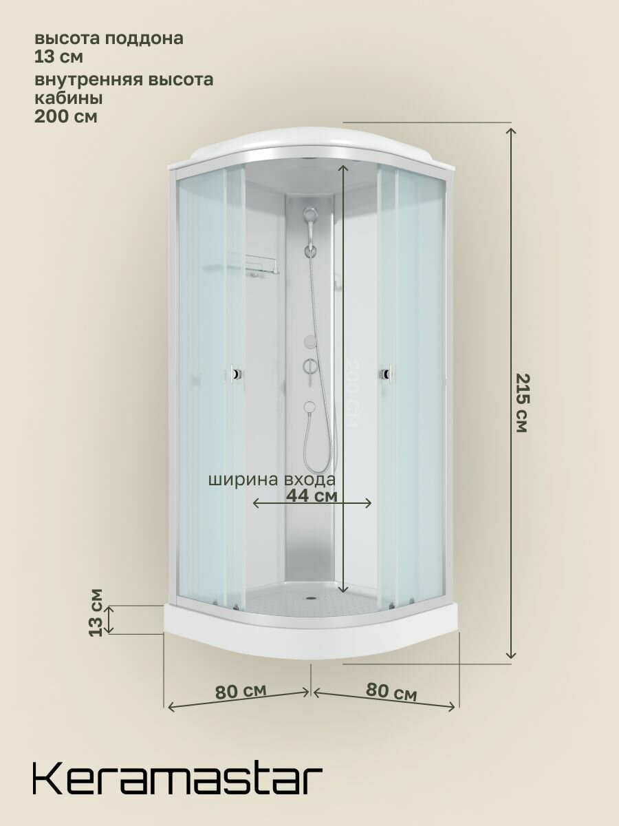 Душевая кабина 80x80x215 Keramastar Astra KR098041 с низким поддоном интересное: