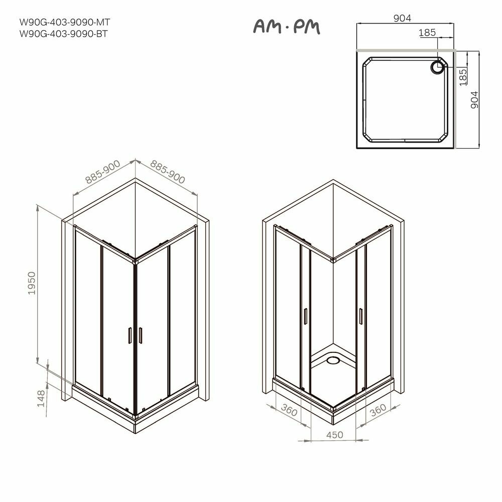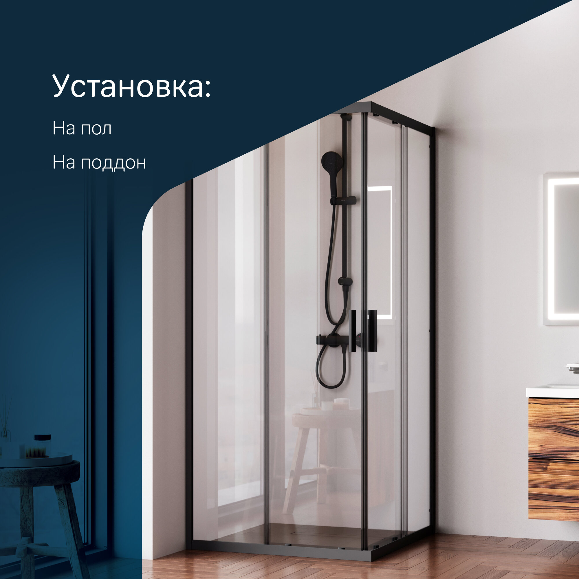 Душевой уголок AM.PM Gem 90x90 см, раздвижное открывание, профиль черный матовый, стекло прозрачное, без поддона интересное: