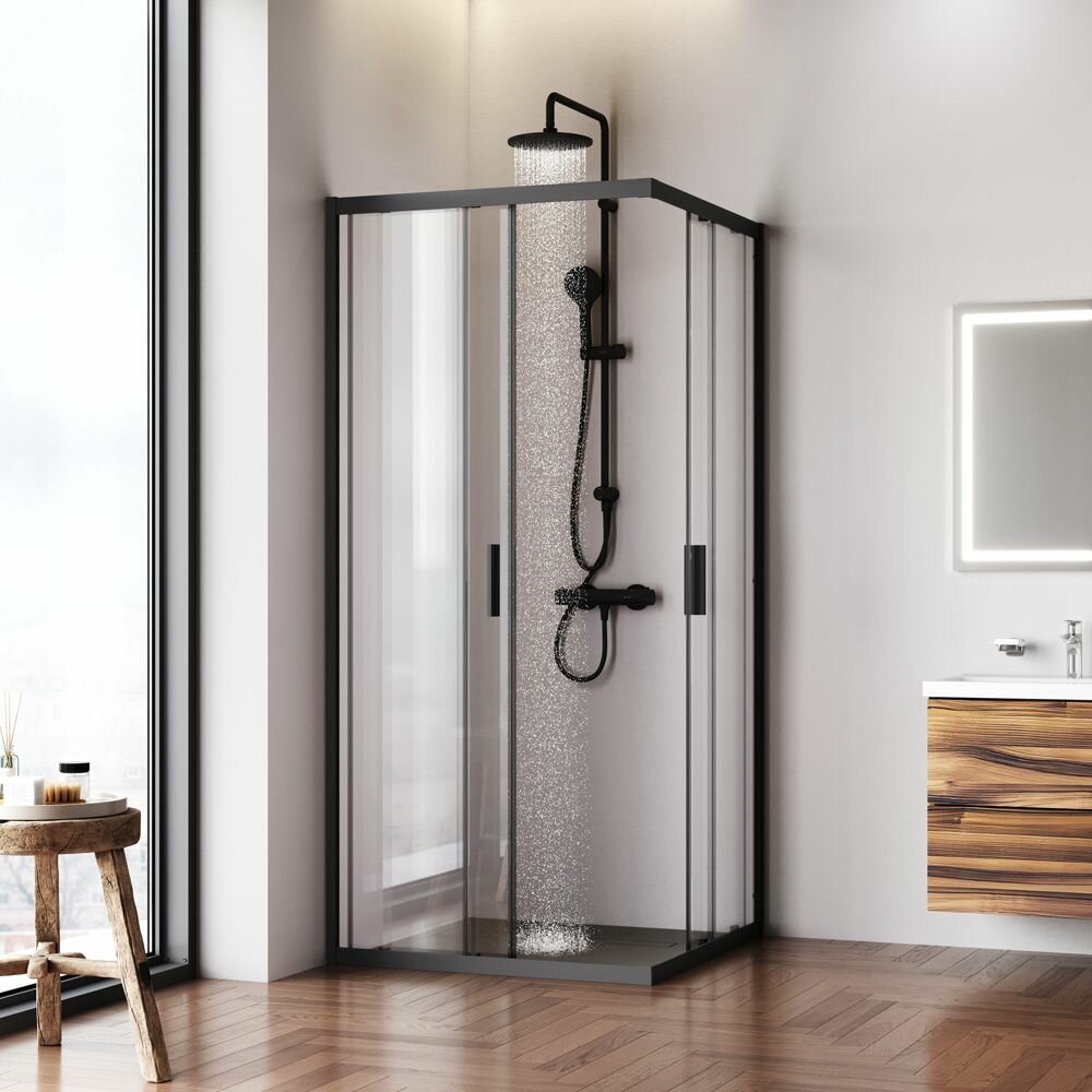 Купить Душевой уголок AM.PM Gem 90x90 см, раздвижное открывание, профиль черный матовый, стекло прозрачное, без поддона