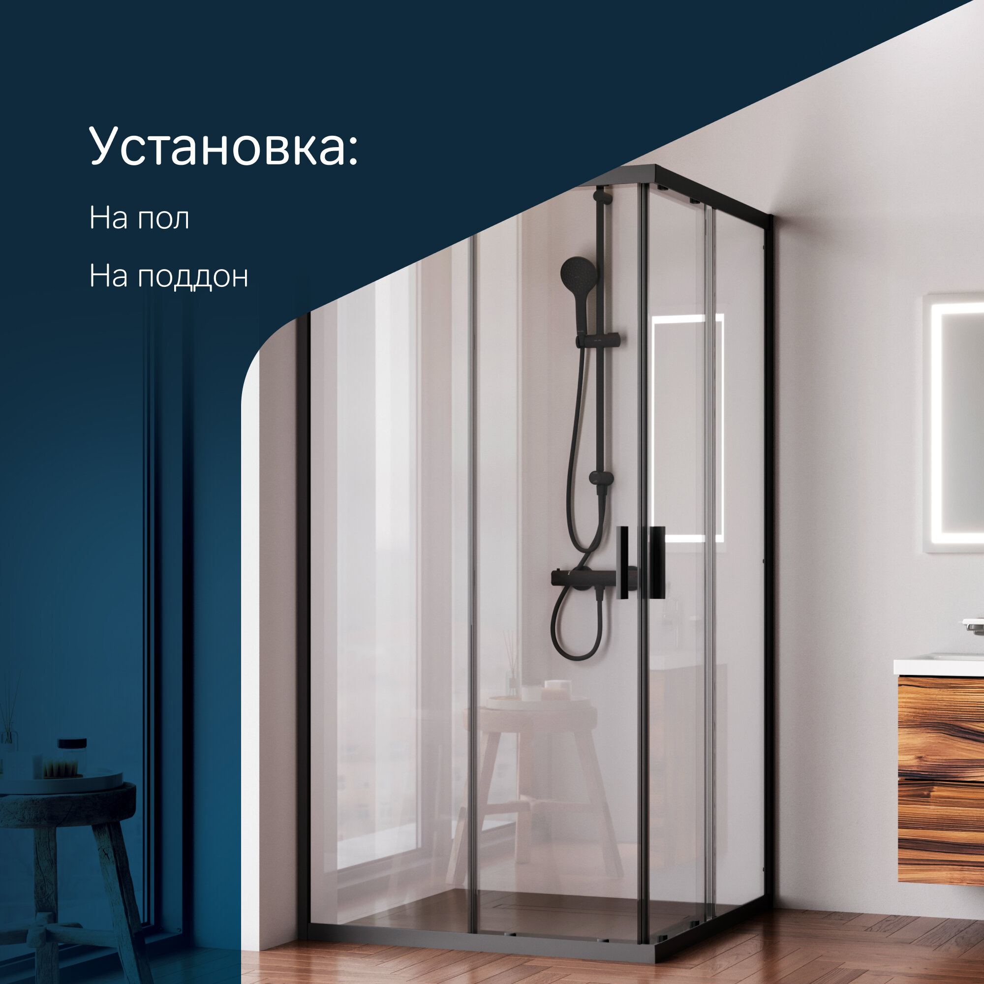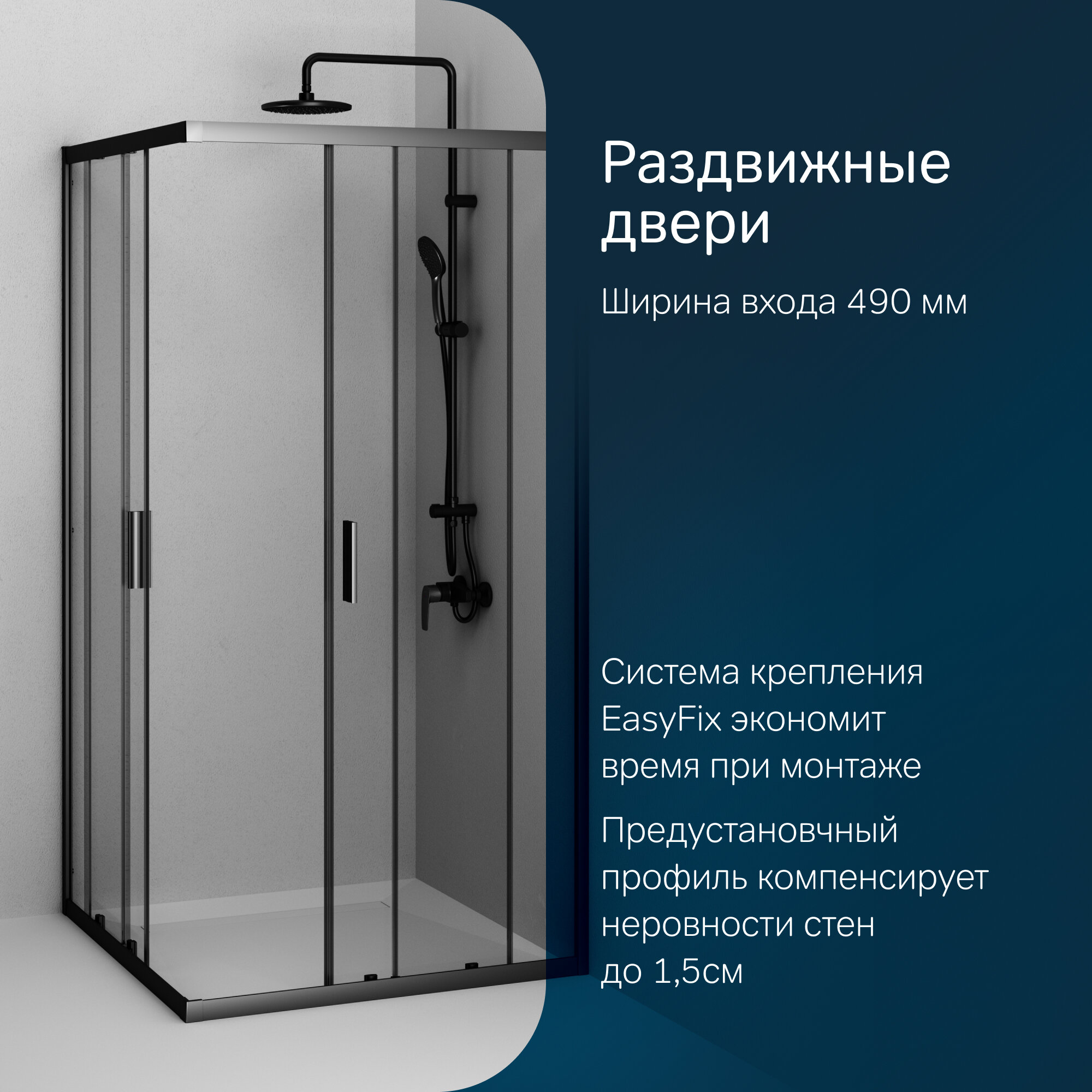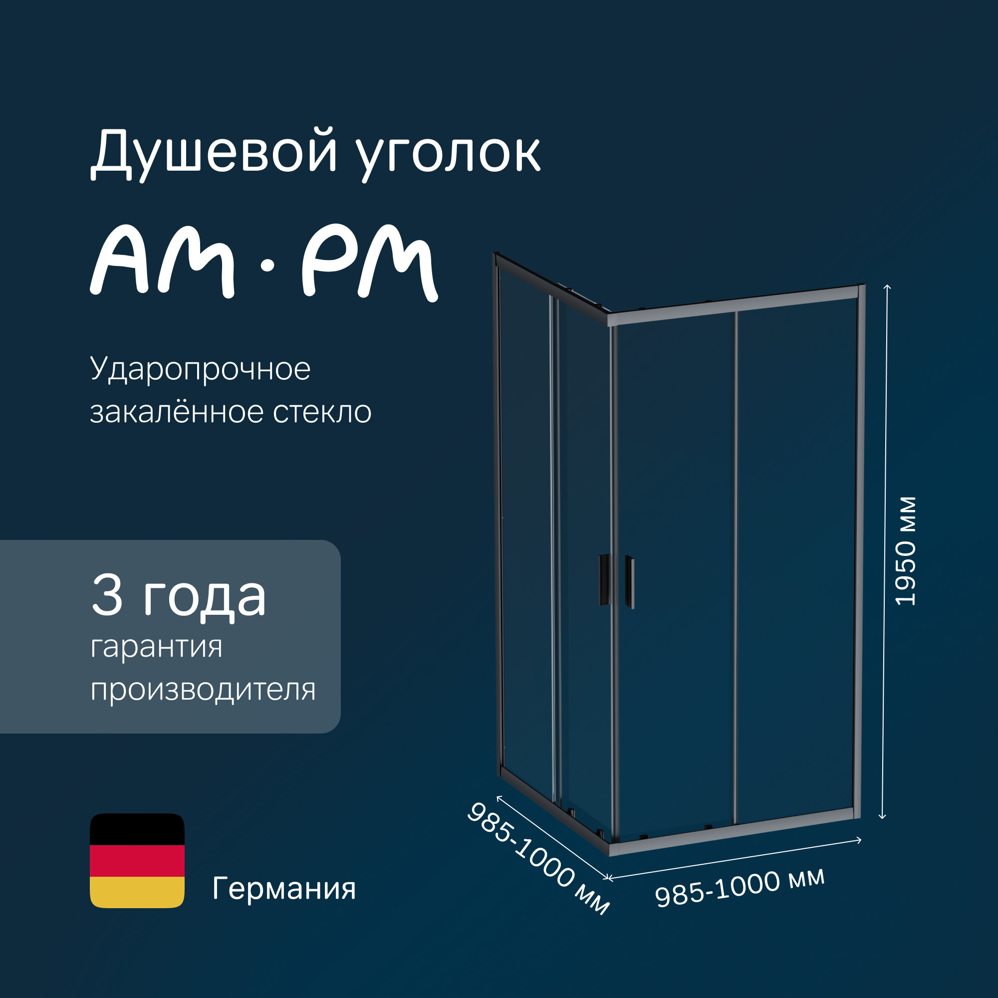 Душевой уголок AM.PM Gem 100x100 см, раздвижное открывание, профиль черный матовый, стекло прозрачное, без поддона интересное: