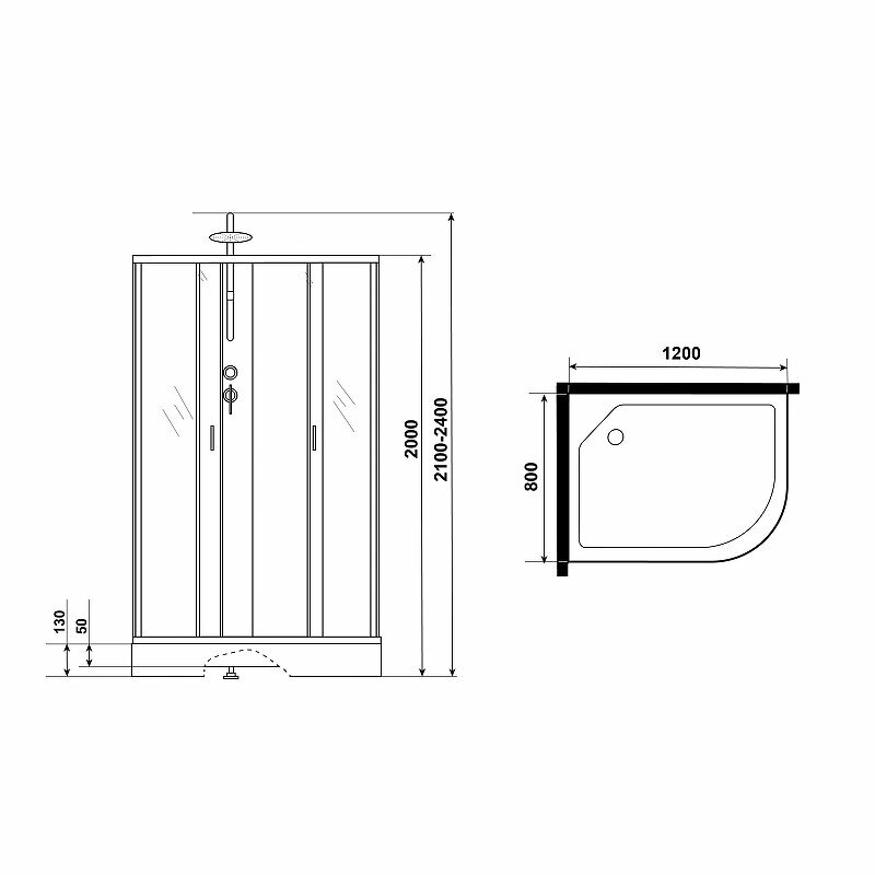 Душевая кабина Niagara E120/80/40L/MT (1200х800х2150) высокий поддон (40см) стекло матовое