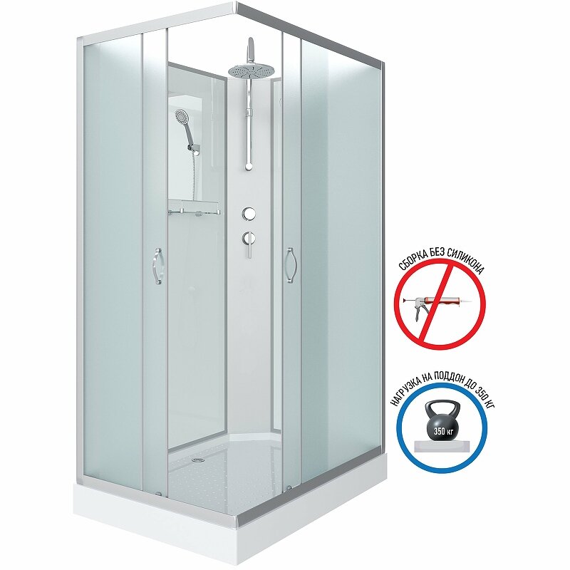 Душевые кабины Niagara Classic 120х80 NG-43285-14QP низкий поддон, стекло матовое, профиль серебро