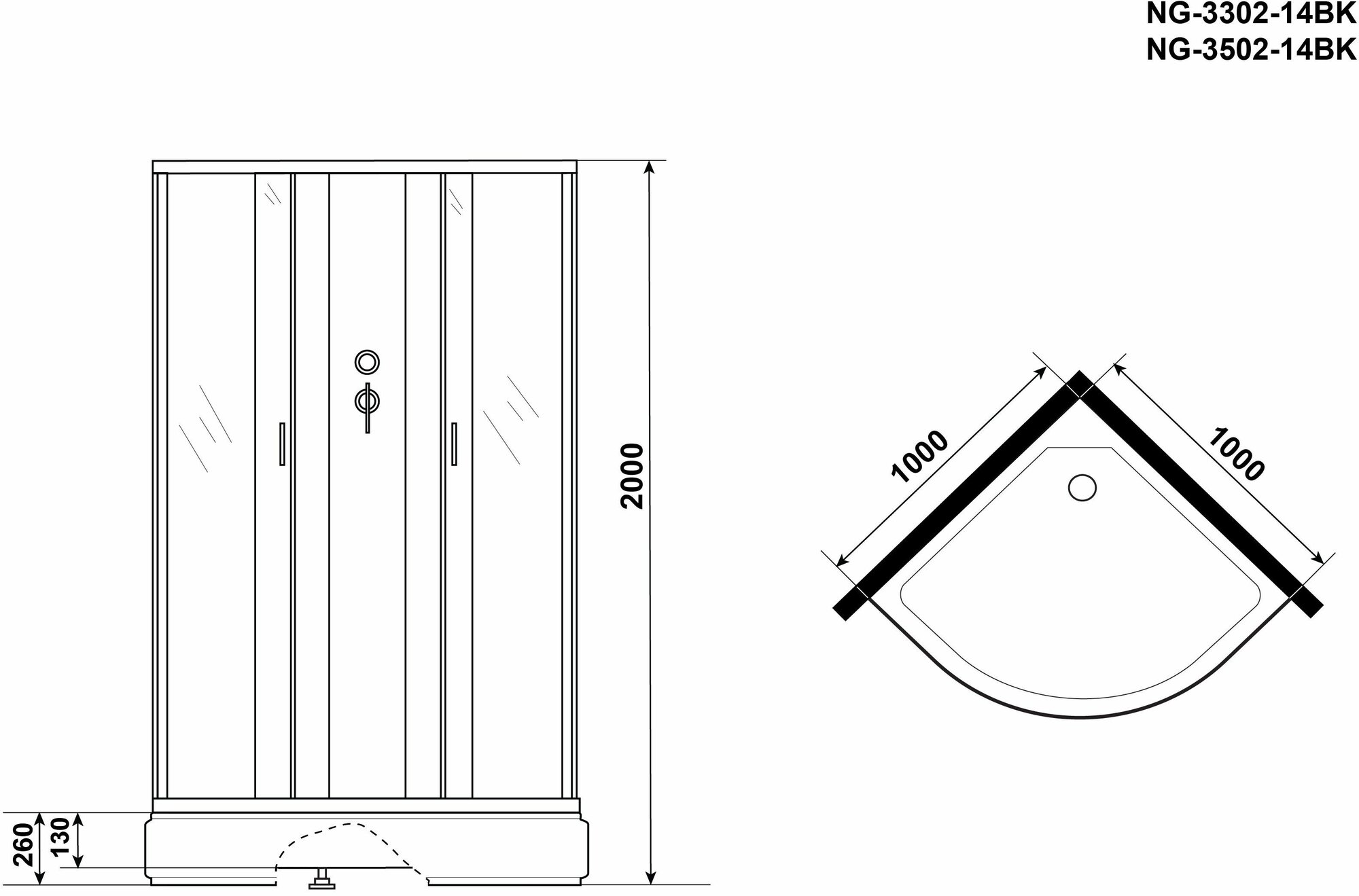 Душевая кабина ng-3301-14bkg (900х900х2000) средний поддон(26см) стекло матовое