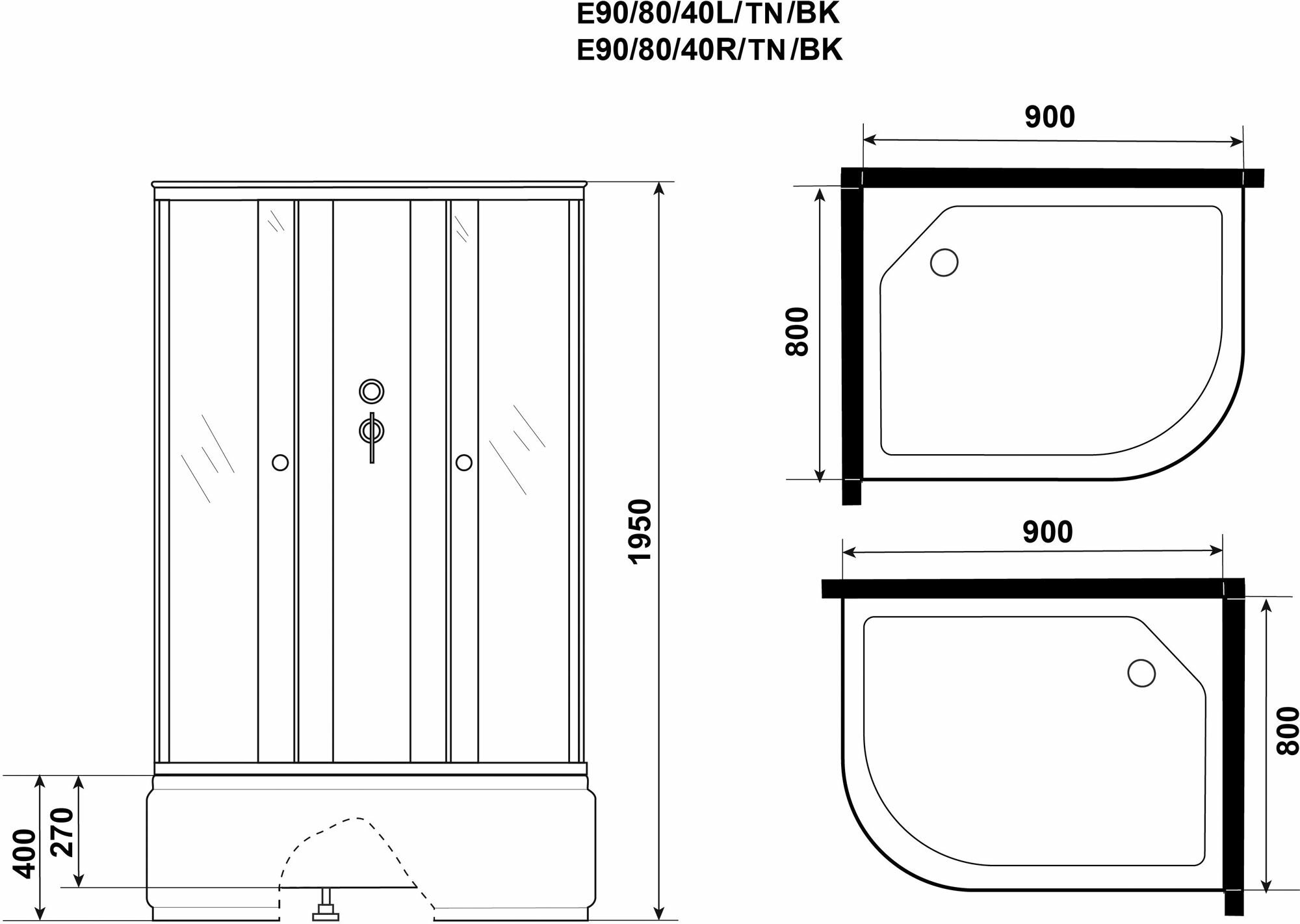 Душевая кабина Niagara Eco 90x80 L E90/80/40L/TN/BK без гидромассажа