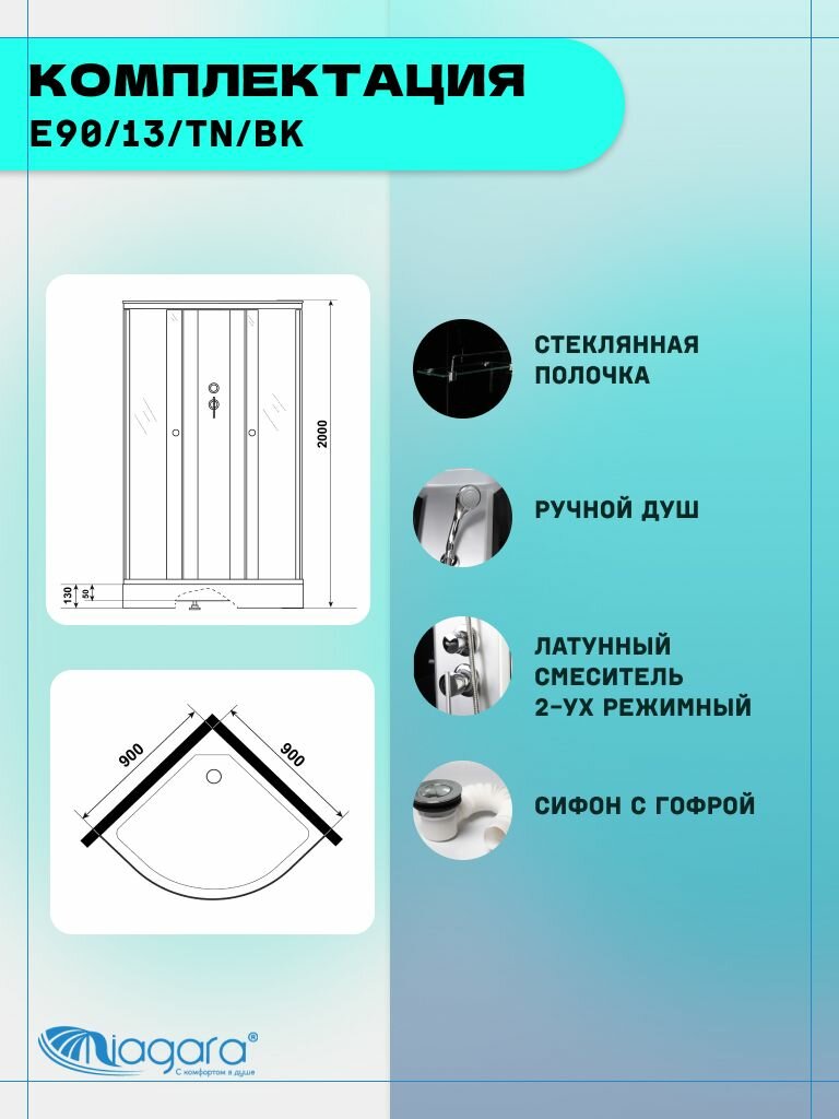Купить Душевая кабина Niagara Eco E90/13/TN/BK (90х90х200) низкий поддон(13см), стекло тонированное,3 места