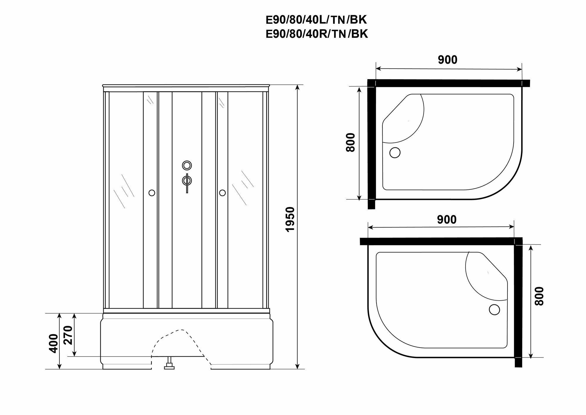 Душевая кабина Niagara Eco 90x80 L E90/80/40L/TN/BK без гидромассажа