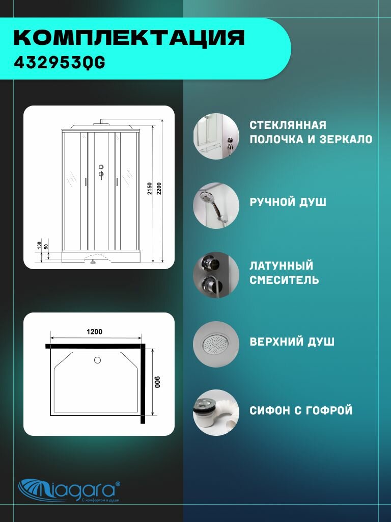 СохранитьДушевая кабина Niagara Classic NG-43295-14QG (120х90х215) низкий поддон(13см), стекло матовое,3 места интересное: