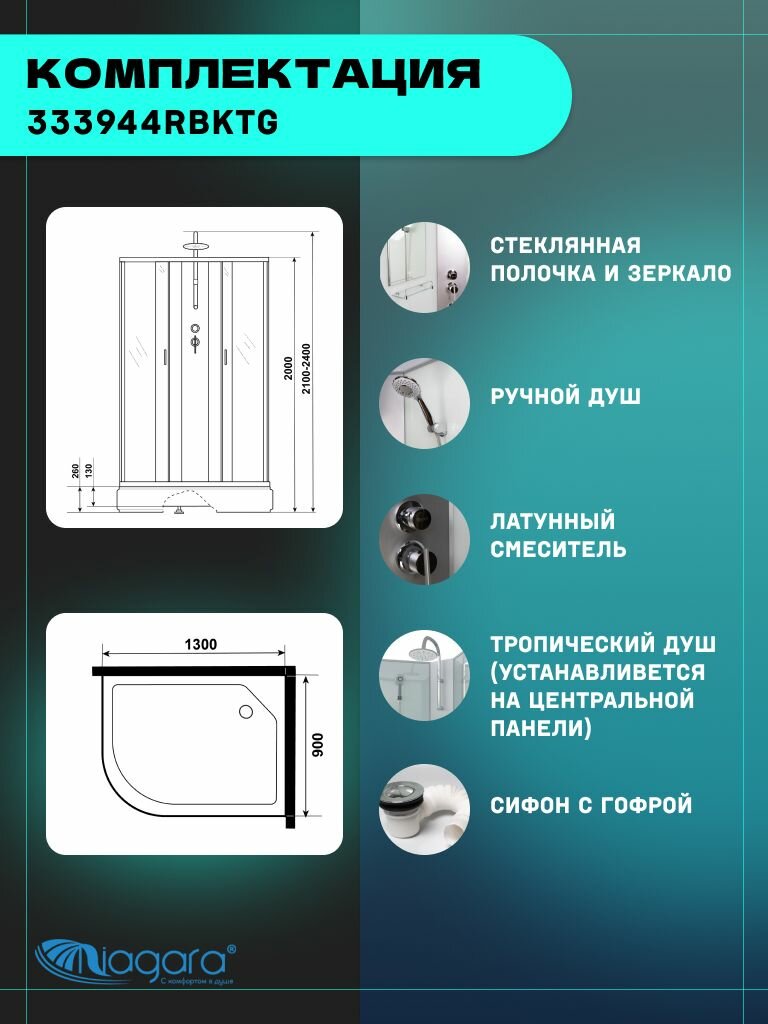 СохранитьДушевая кабина Niagara Classic NG-33394-14RBKTG (130х90х210) средний поддон(26см), стекло матовое,4 места интересное: