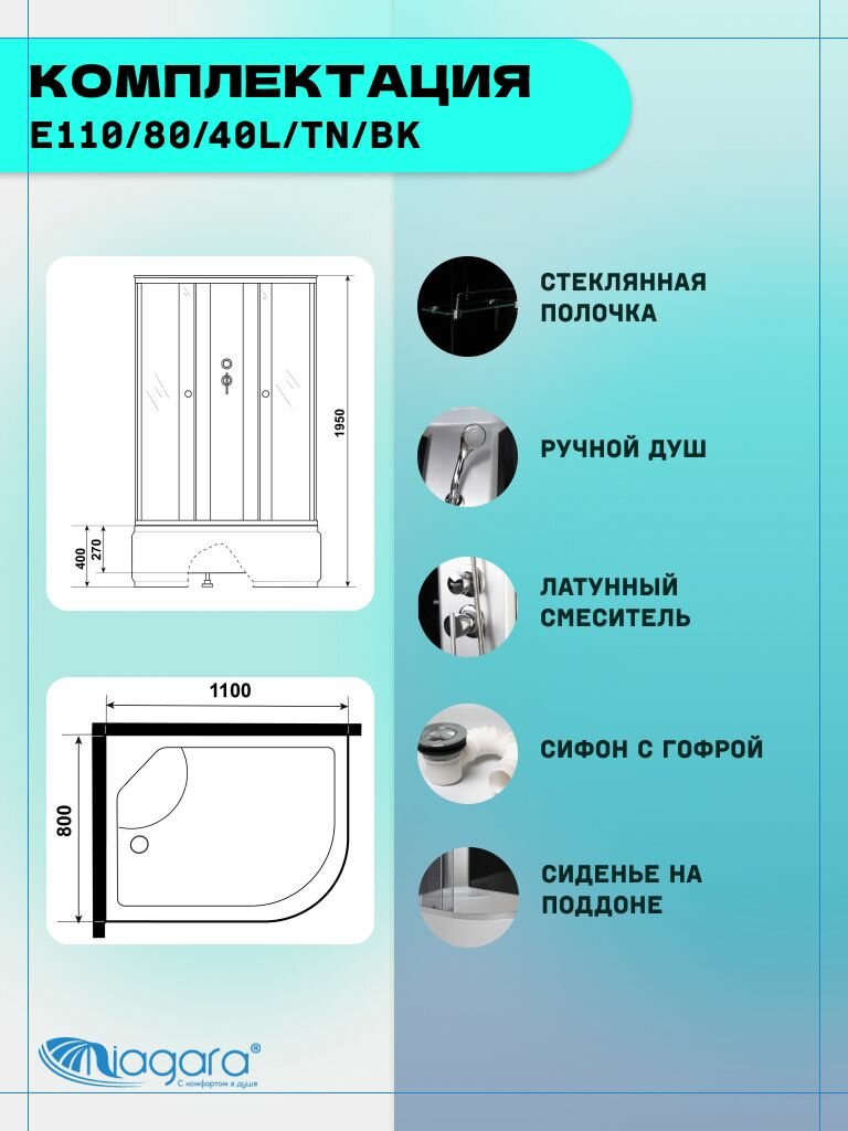 Купить Душевая кабина Niagara Eco E110/80/40L/TN/BK (110х80х195) высокий поддон(40см), стекло черное,4 места
