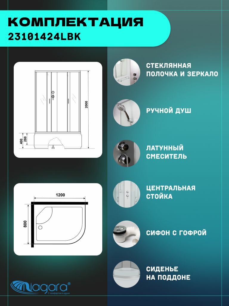 СохранитьДушевая кабина Niagara Classic NG-2310-14LBK (120х80х200) высокий поддон(40см), стекло матовое,4 места интересное: