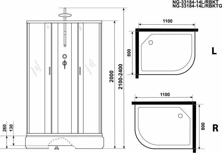 Душевая кабина Niagara Classic NG-33084-14LBK 1000х800х2000