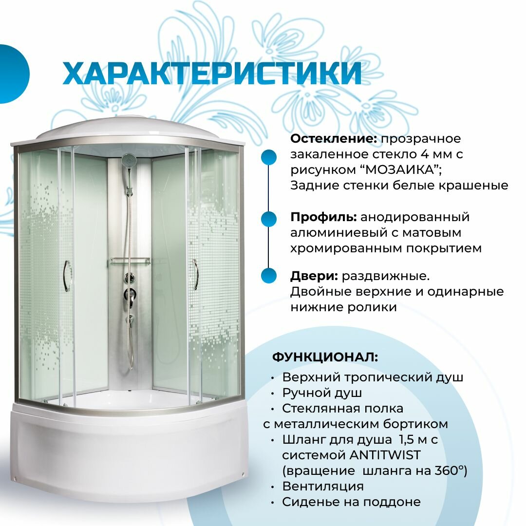 Душевая кабина мономах No Silicone (90x90) высокий поддон, стекло мозаика, универсальная интересное: