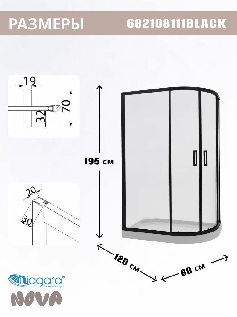 Купить Душевое ограждение Niagara Nova NG-6821-08ВLACK (120х80х195) четверть круга, черный, двери раздвижные, стекло прозрачное,1 место