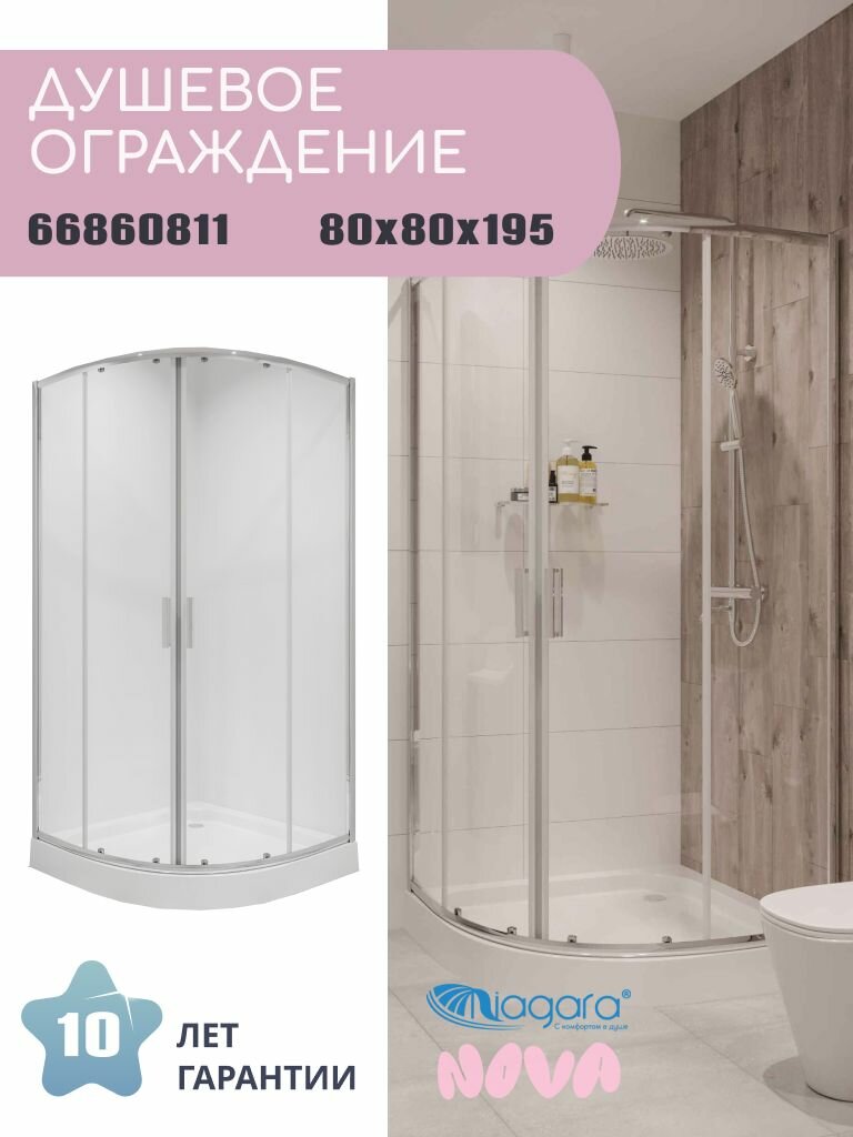 Купить Душевое ограждение Niagara Nova NG-6686-08 (80х80х195) четверть круга, хром, двери раздвижные, стекло прозрачное,1 место