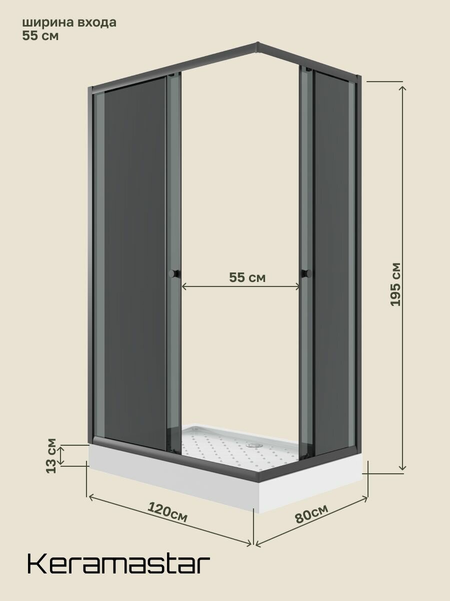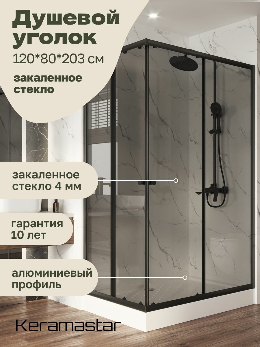 Купить Душевой уголок 120x80x203 Keramastar Supra Night KR067052 с низким поддоном, без крыши