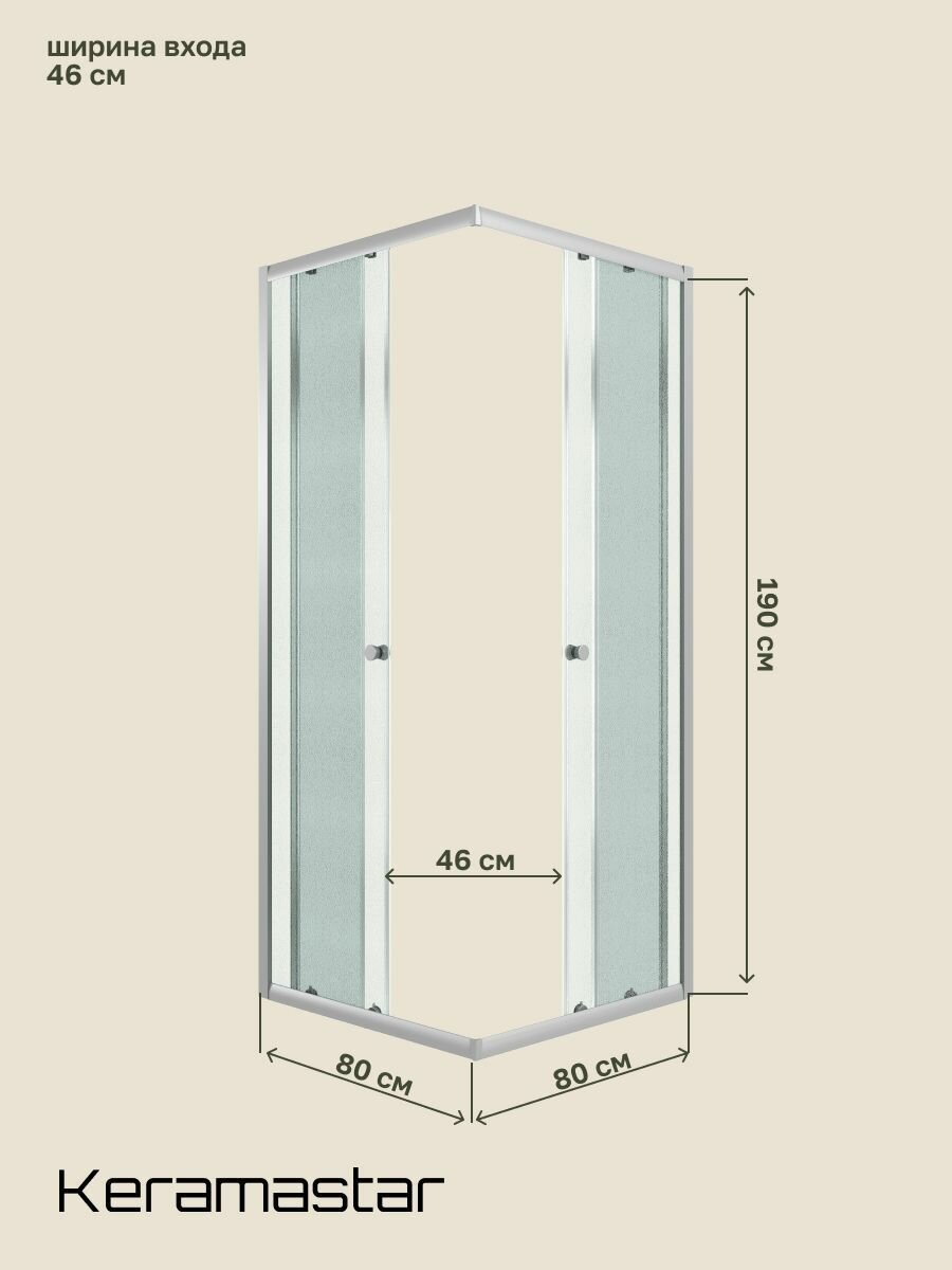 Душевой уголок 80x80x203 Keramastar Supra KR067031 с низким поддоном, без крыши