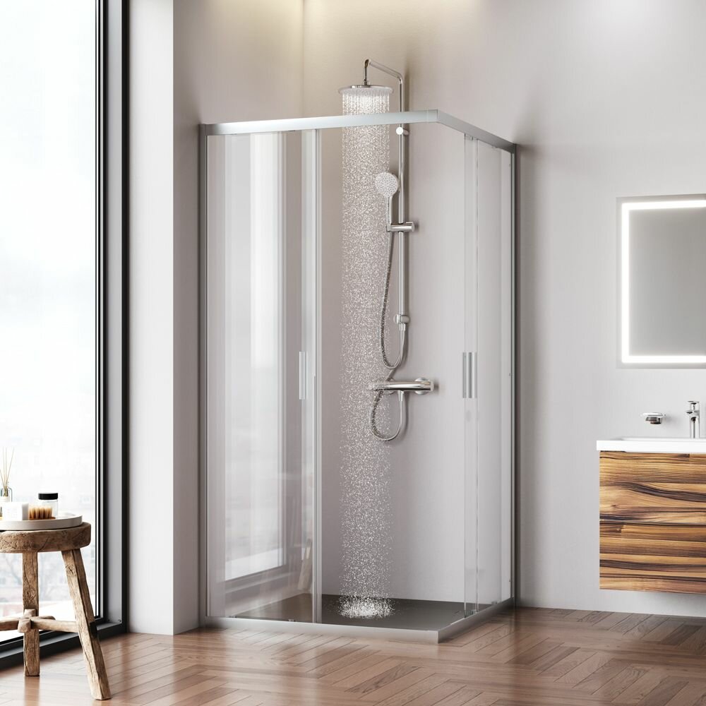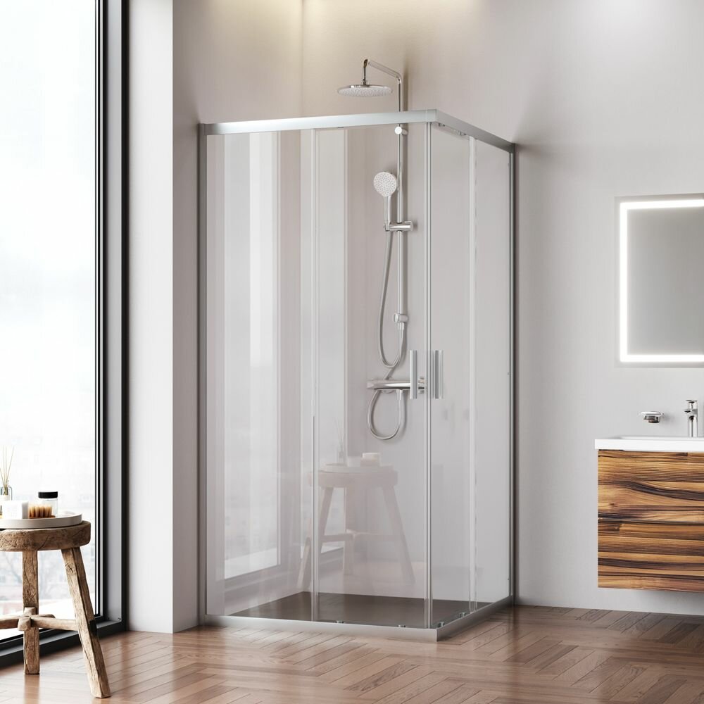 Купить Душевой уголок AM.PM Gem ограждение 100x100, раздвижное открывание, профиль хром матовый, стекло прозрачное, без поддона