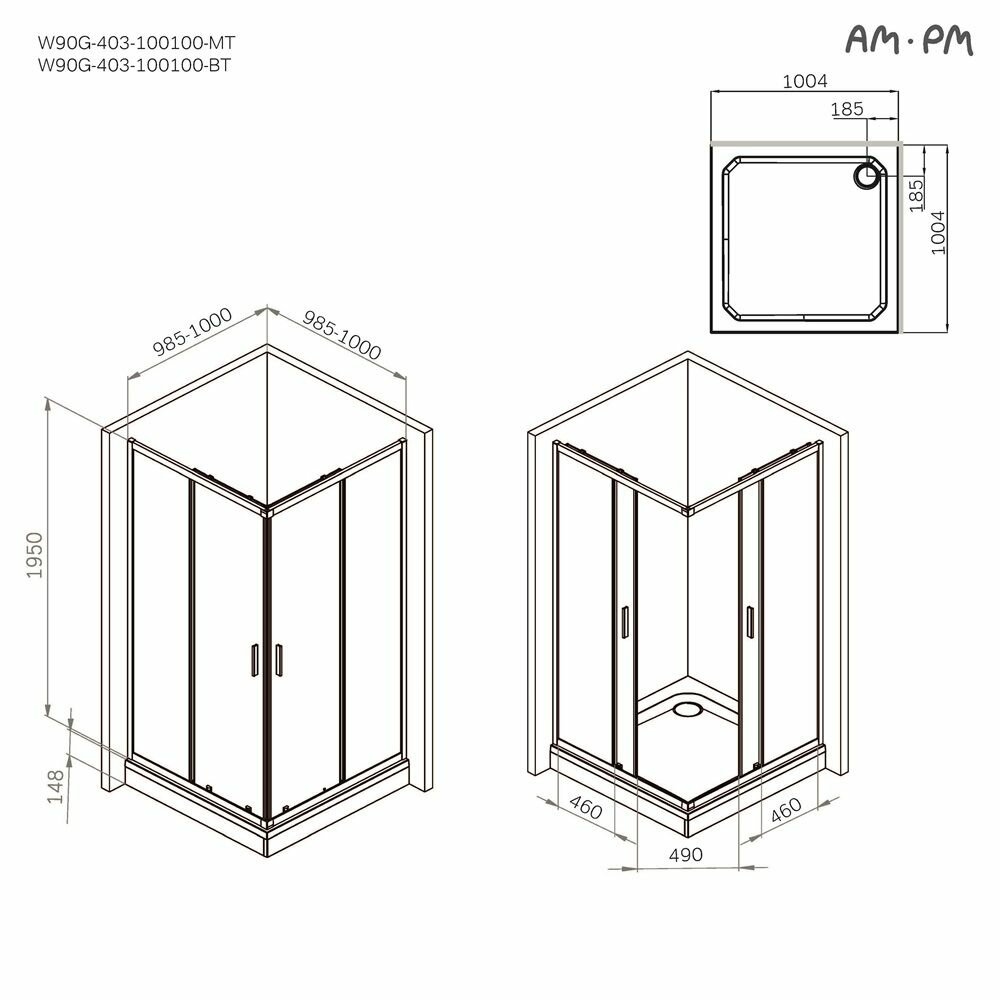 Душевой уголок AM.PM Gem ограждение 100x100, раздвижное открывание, профиль хром матовый, стекло прозрачное, без поддона интересное: