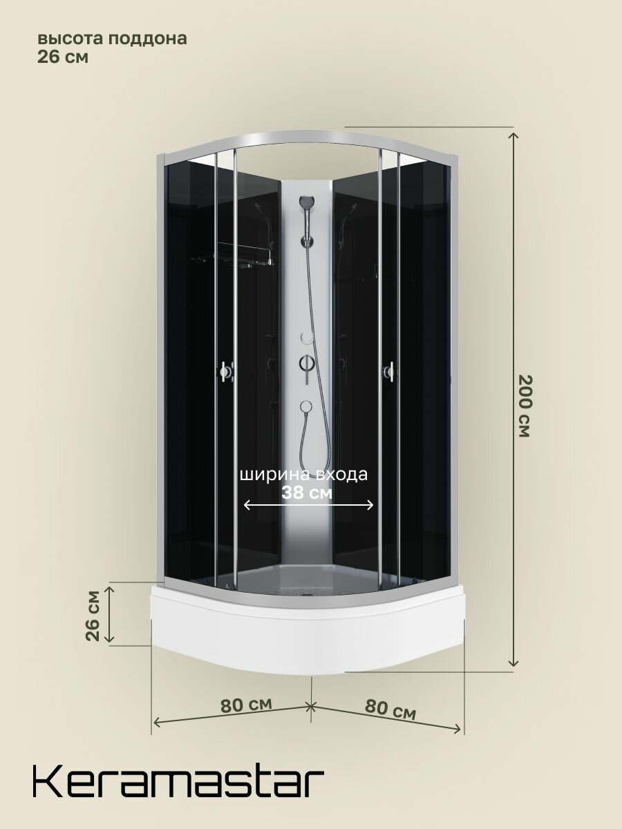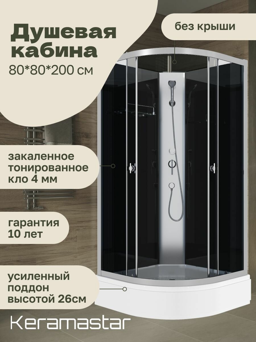 Душевая кабина 80x80x200 Keramastar Astra Night KR098052BK со средним поддоном, без крыши интересное: