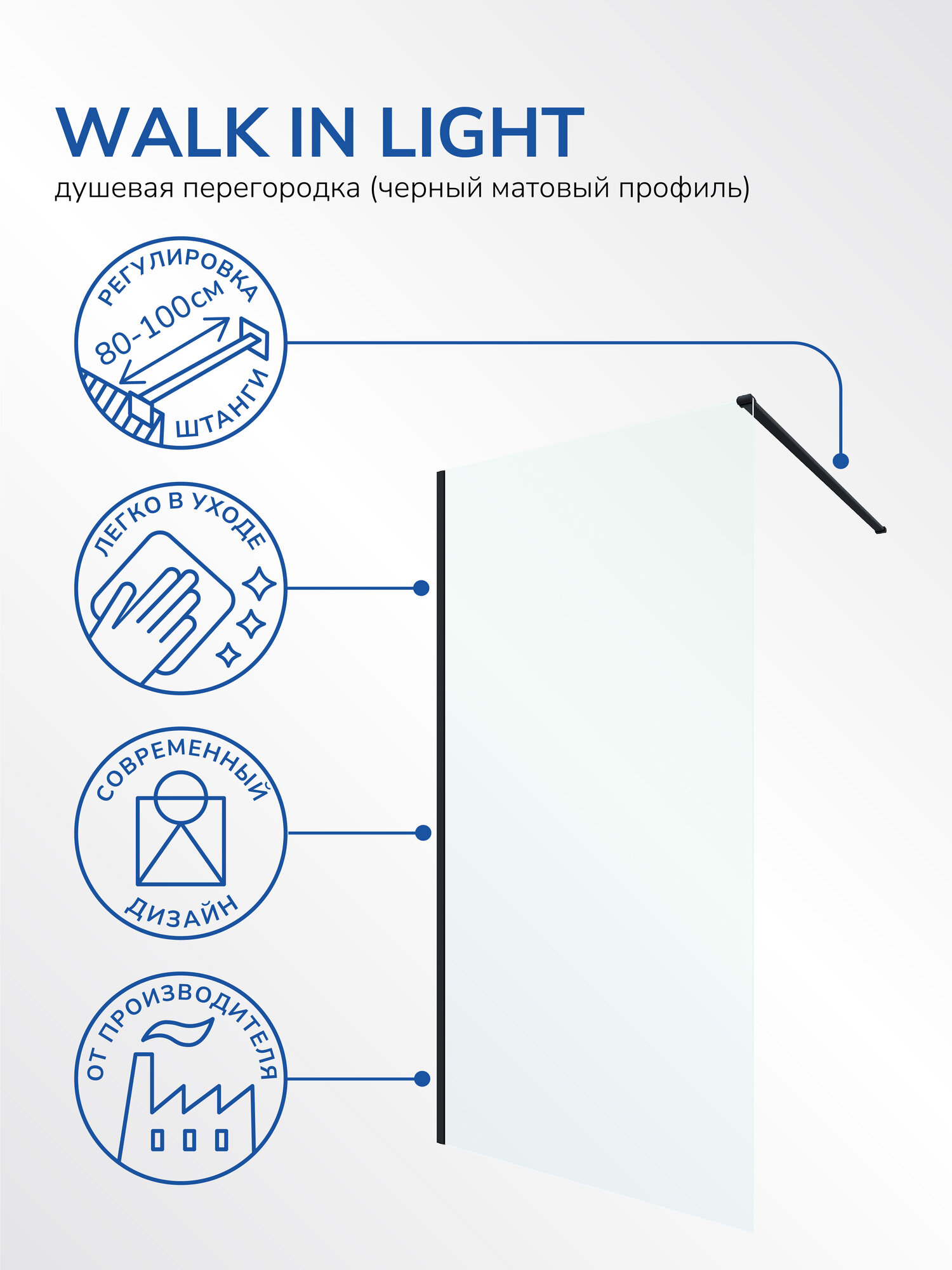 Купить Душевая перегородка Ulitka Walk In Light 800х1950 мм, профиль черный, стекло прозрачное