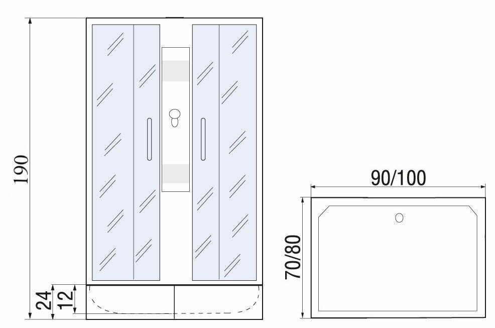 Душевая кабина River QUADRO Б/К (90x70) средний поддон, стекло матовое, универсальная интересное:
