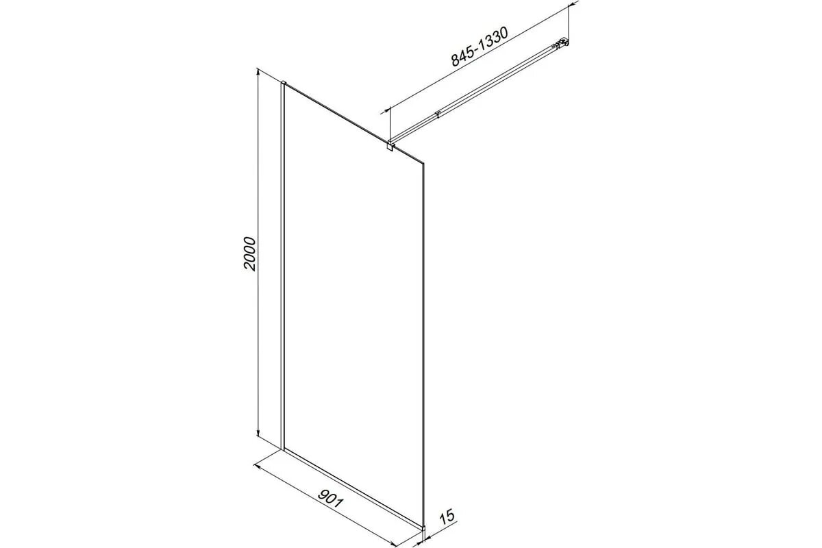 Купить Душевая перегородка AM.PM Func 90x200 W84WI-90-F1-BTE стекло прозрачное профиль черный