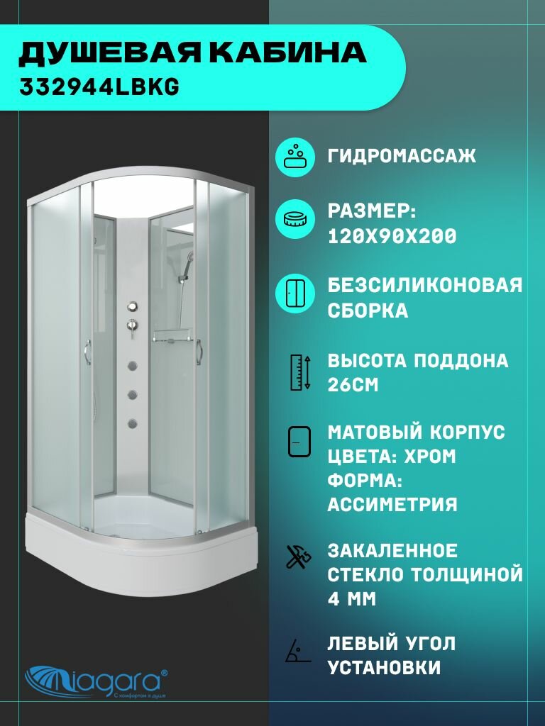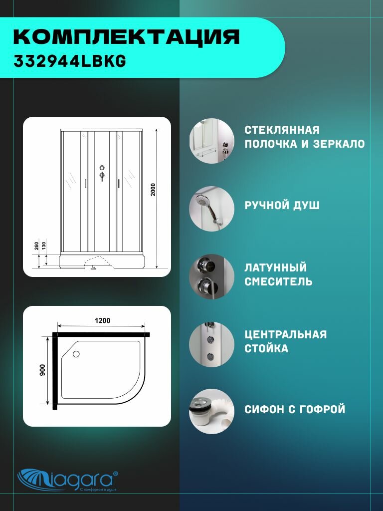 СохранитьДушевая кабина Niagara Classic NG-33294-14LBKG (120х90х200) средний поддон(26см), стекло матовое,4 места интересное: