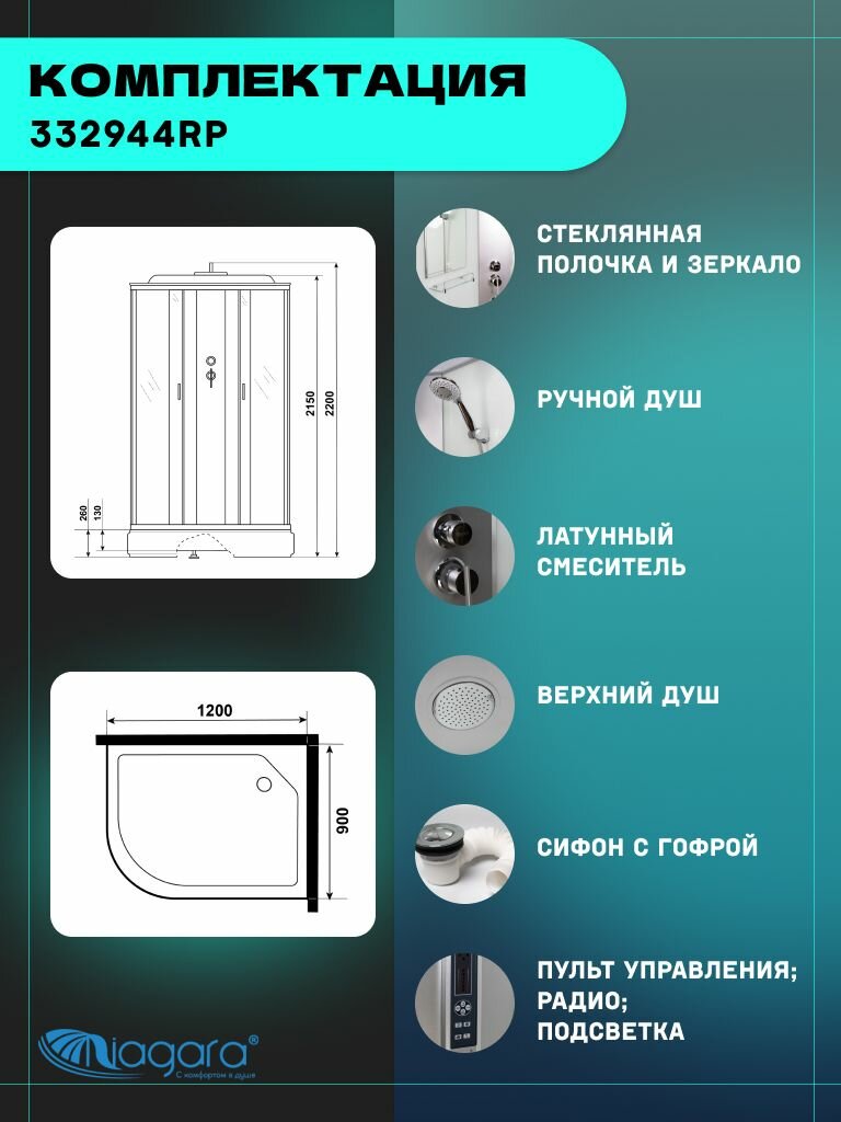 Душевая кабина Niagara Classic NG-33294-14LBKT (120х90х210) средний поддон(26см), стекло матовое,4 места