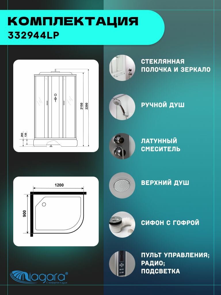 Душевая кабина Niagara Classic NG-33294-14LBKT (120х90х210) средний поддон(26см), стекло матовое,4 места
