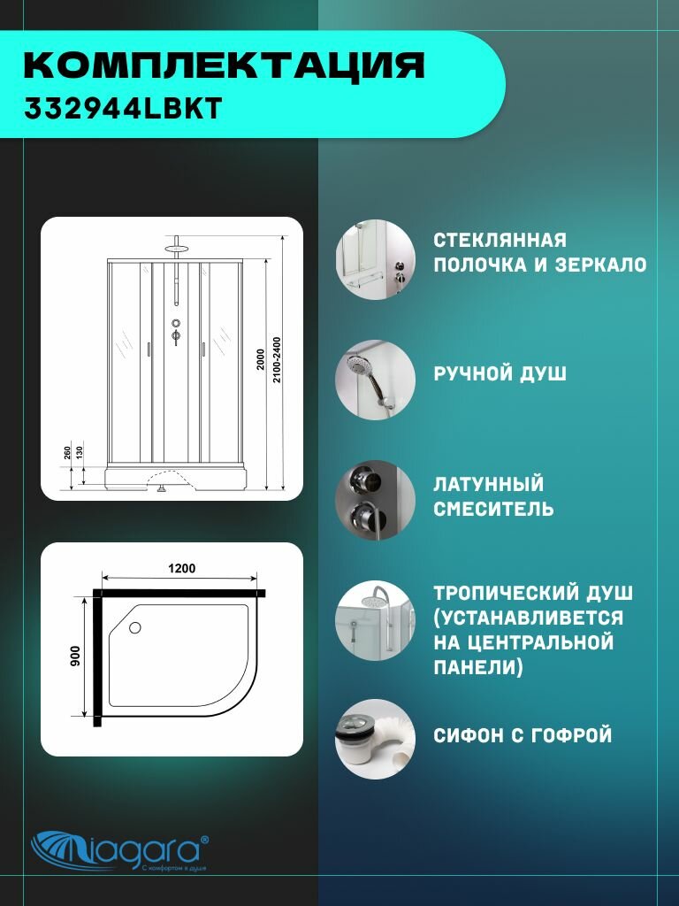 СохранитьДушевая кабина Niagara Classic NG-33294-14LBKT (120х90х210) средний поддон(26см), стекло матовое,4 места интересное: