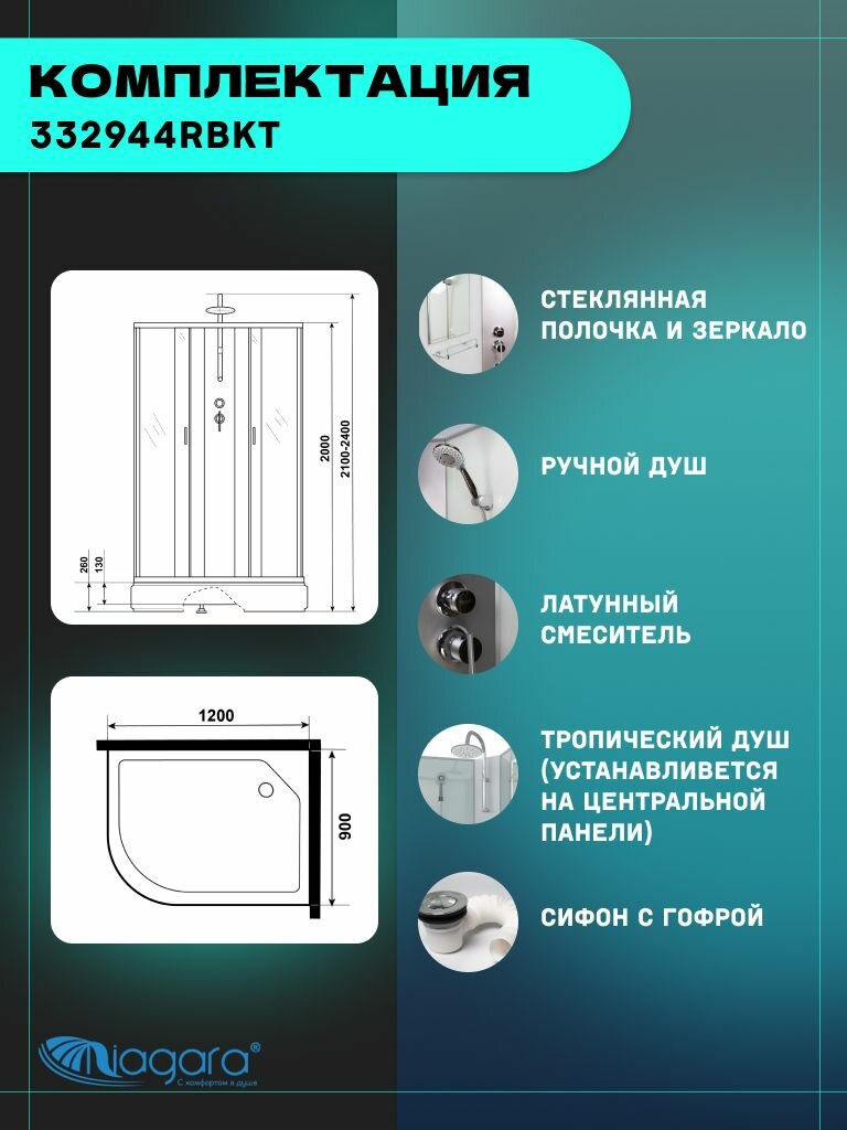 СохранитьДушевая кабина Niagara Classic NG-33294-14RBKT (120х90х210) средний поддон(26см), стекло матовое,4 места интересное: