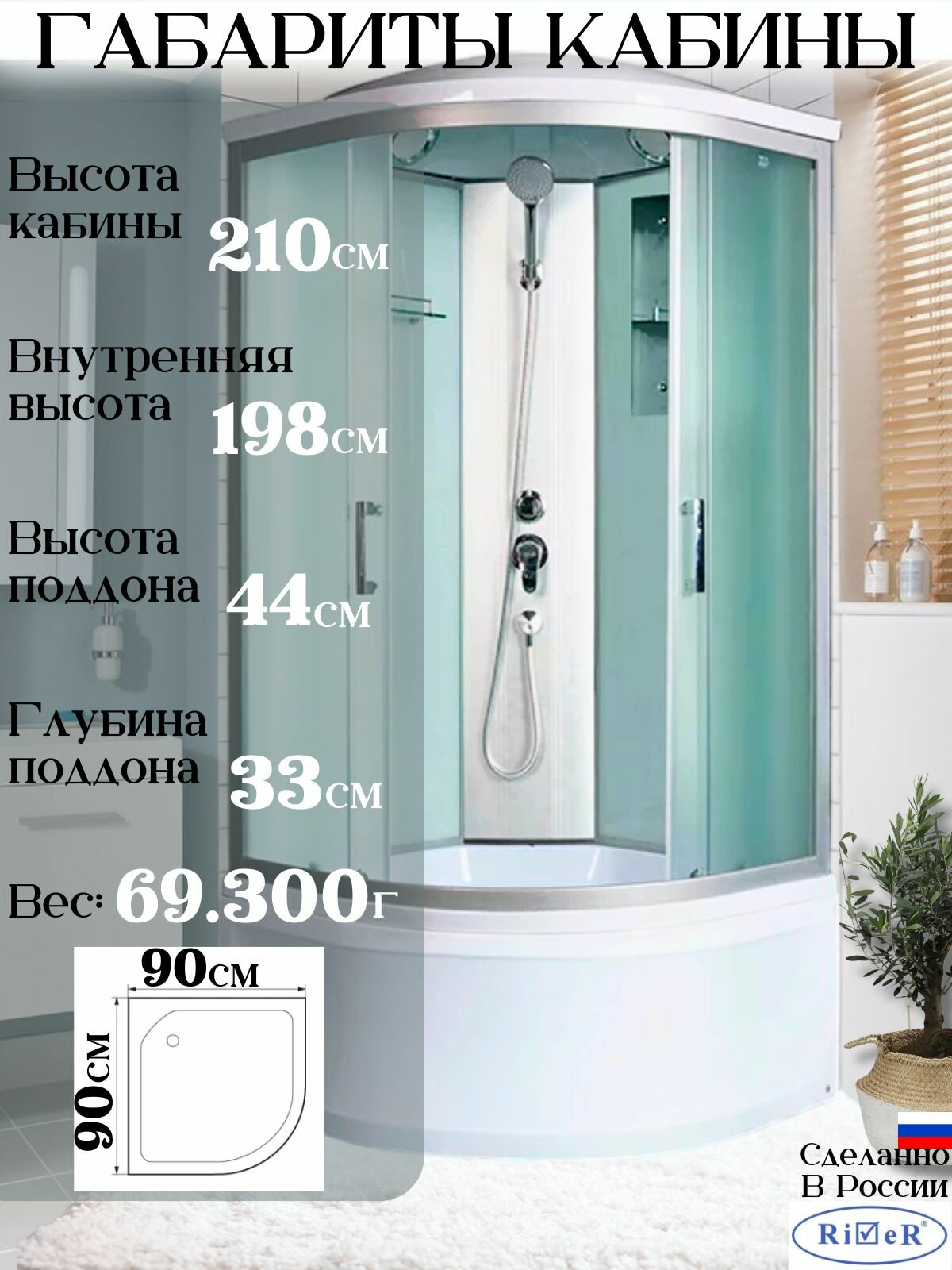 Душевая кабина River Amur 90/44, матовое стекло, высокий поддон, тропический душ, 90x90 см