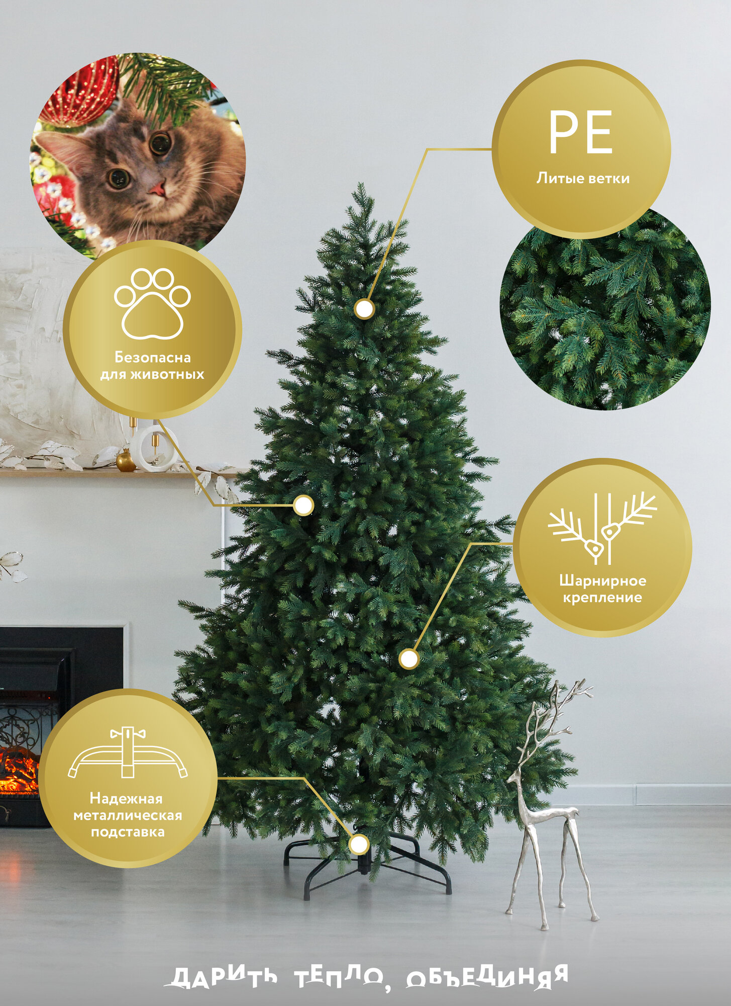 Искусственная елка Брено Люкс 240 см, литая 100%, GREEN TREES 152-336