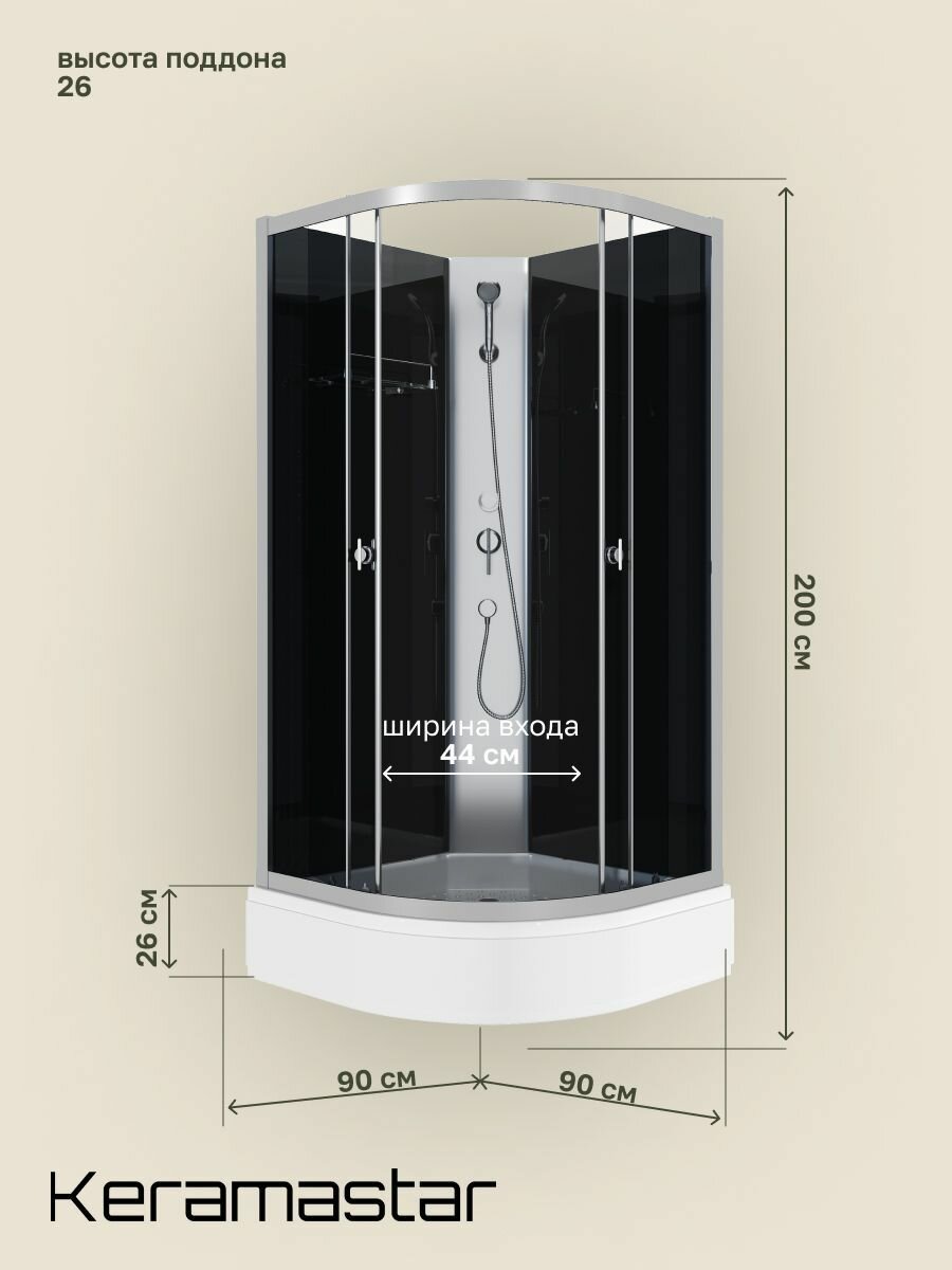 Душевая кабина 90x90x200 Keramastar Astra KR098062BK с низким поддоном, без крыши интересное: